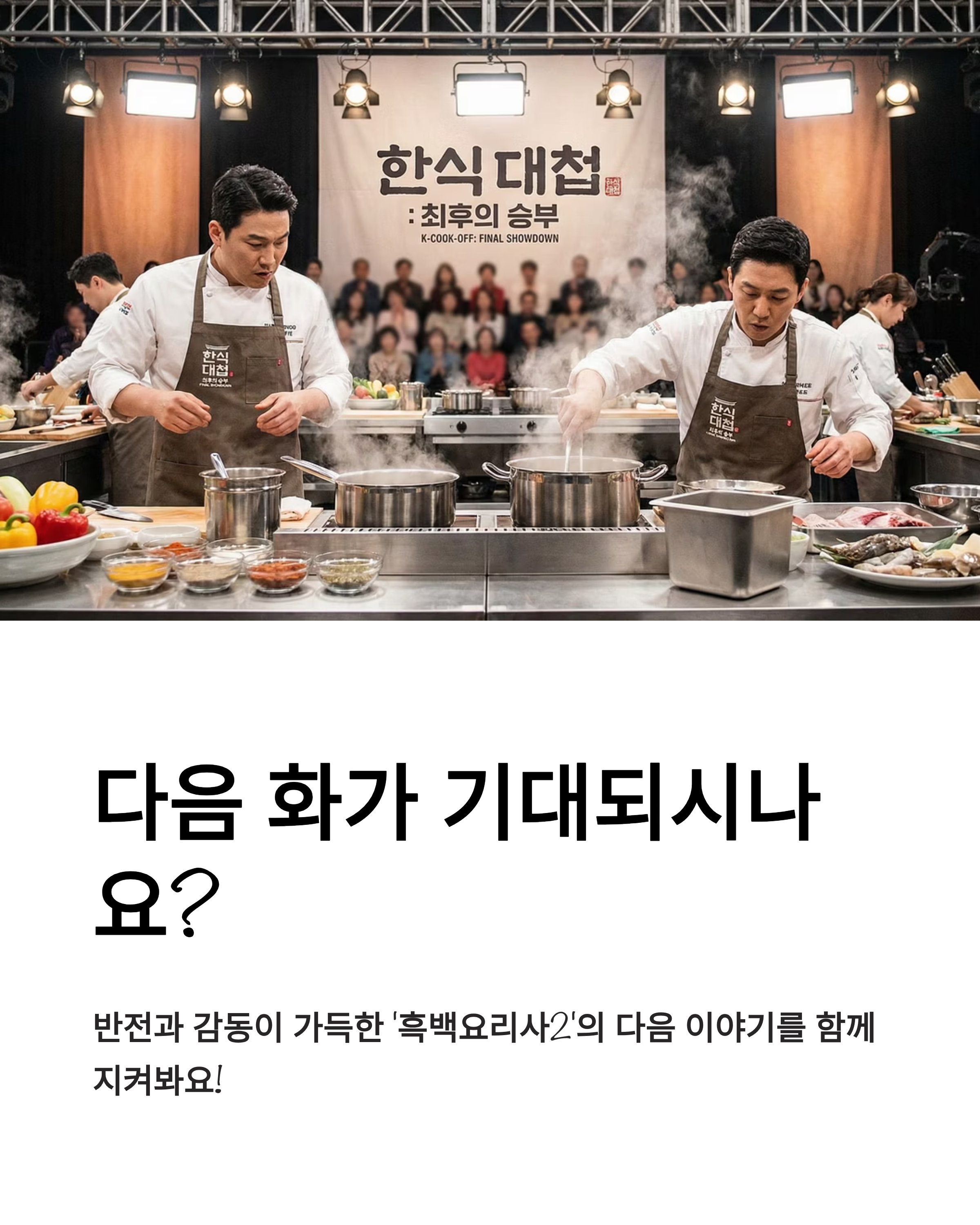 다음 화는 어떤 반전과 감동을 안겨줄까? 이제 ‘흑백요리사2’는 단순한 요리 예능이 아닌, 서사와 감정의 드라마로 진화하고 있다.