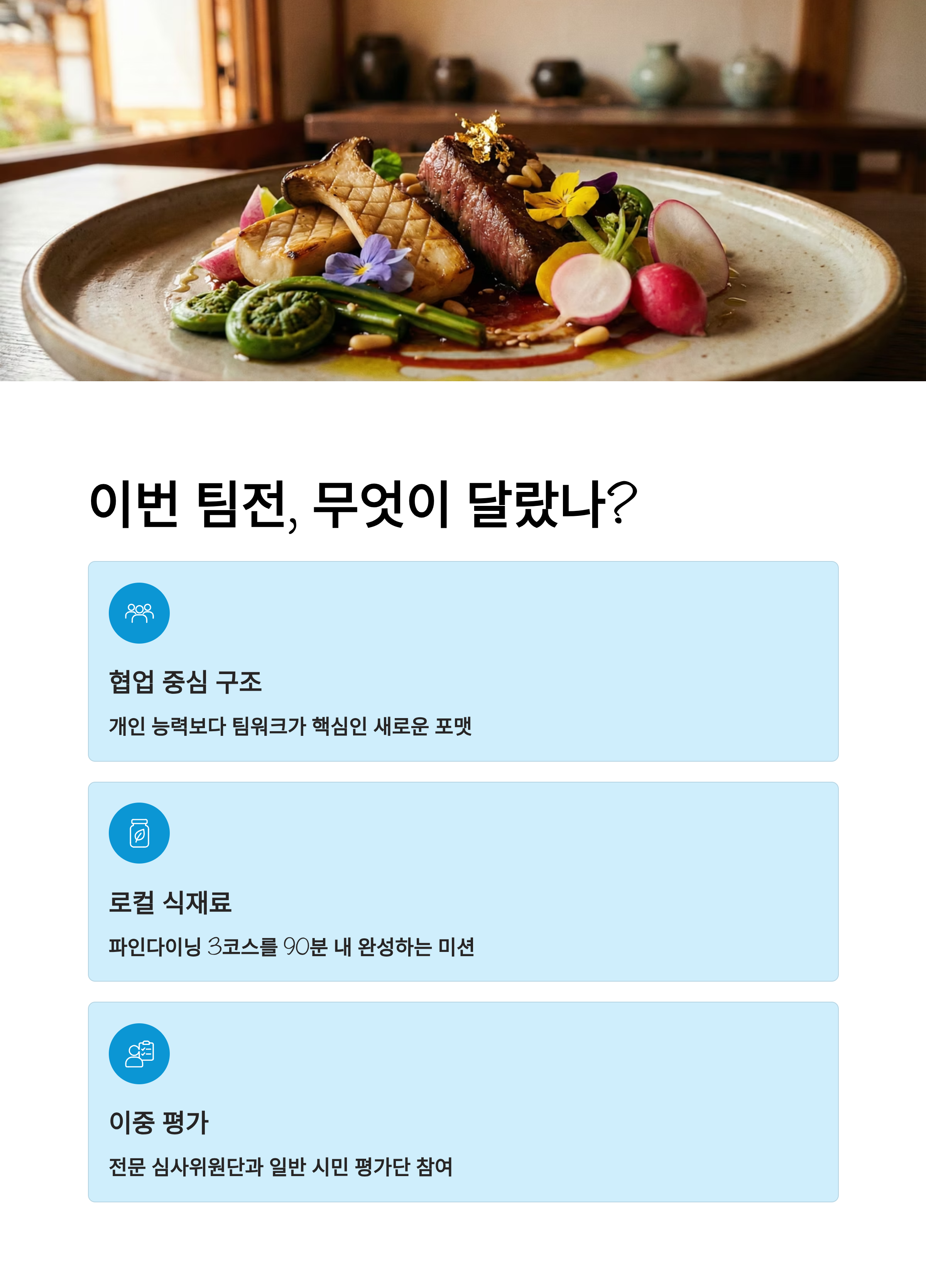 - 요리 전문 심사위원단 + 일반 시민 평가단 참여
