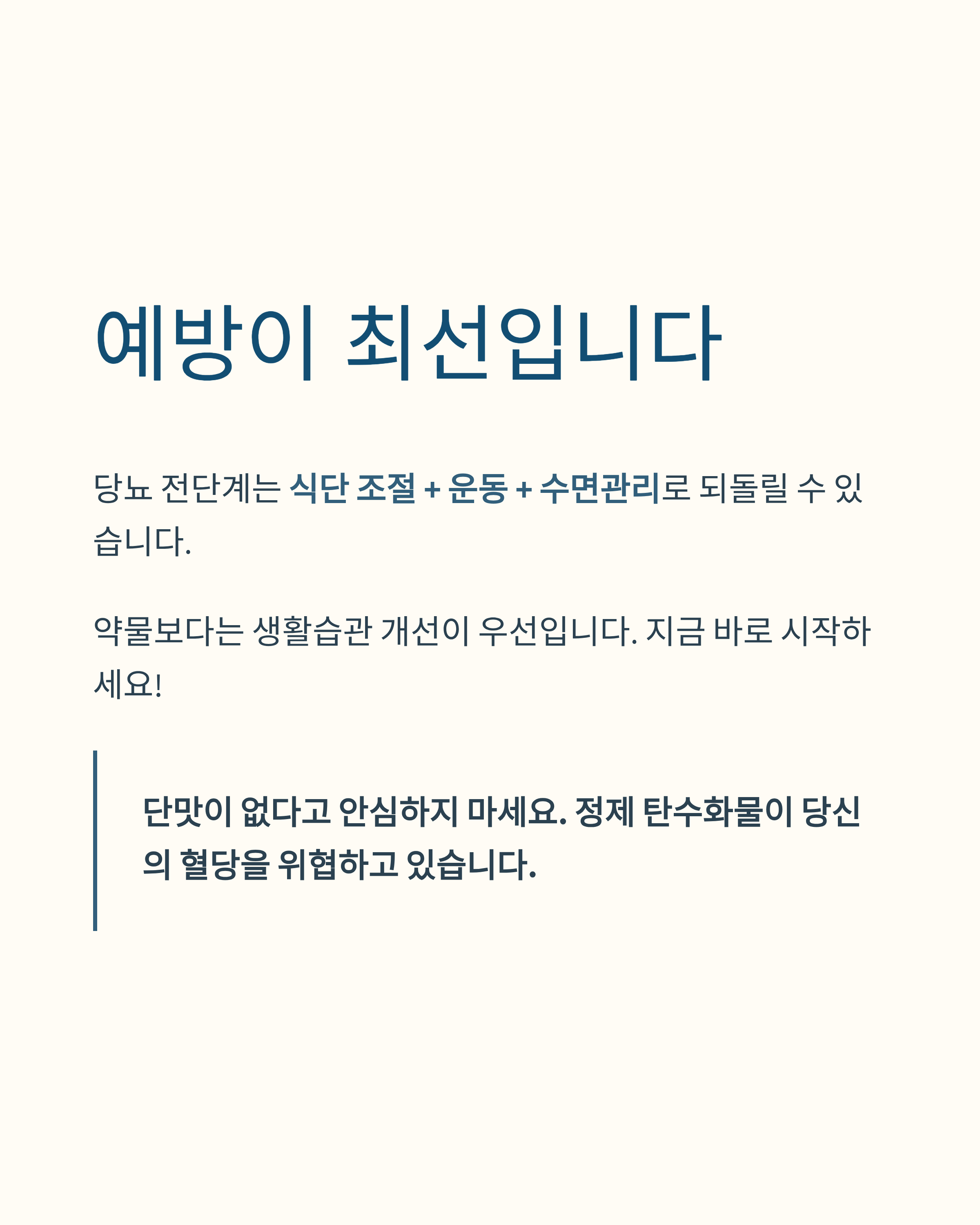 A5. 식단 조절 + 운동 + 수면관리로 되돌릴 수 있습니다. 약물보다는 생활습관 개선이 우선입니다.