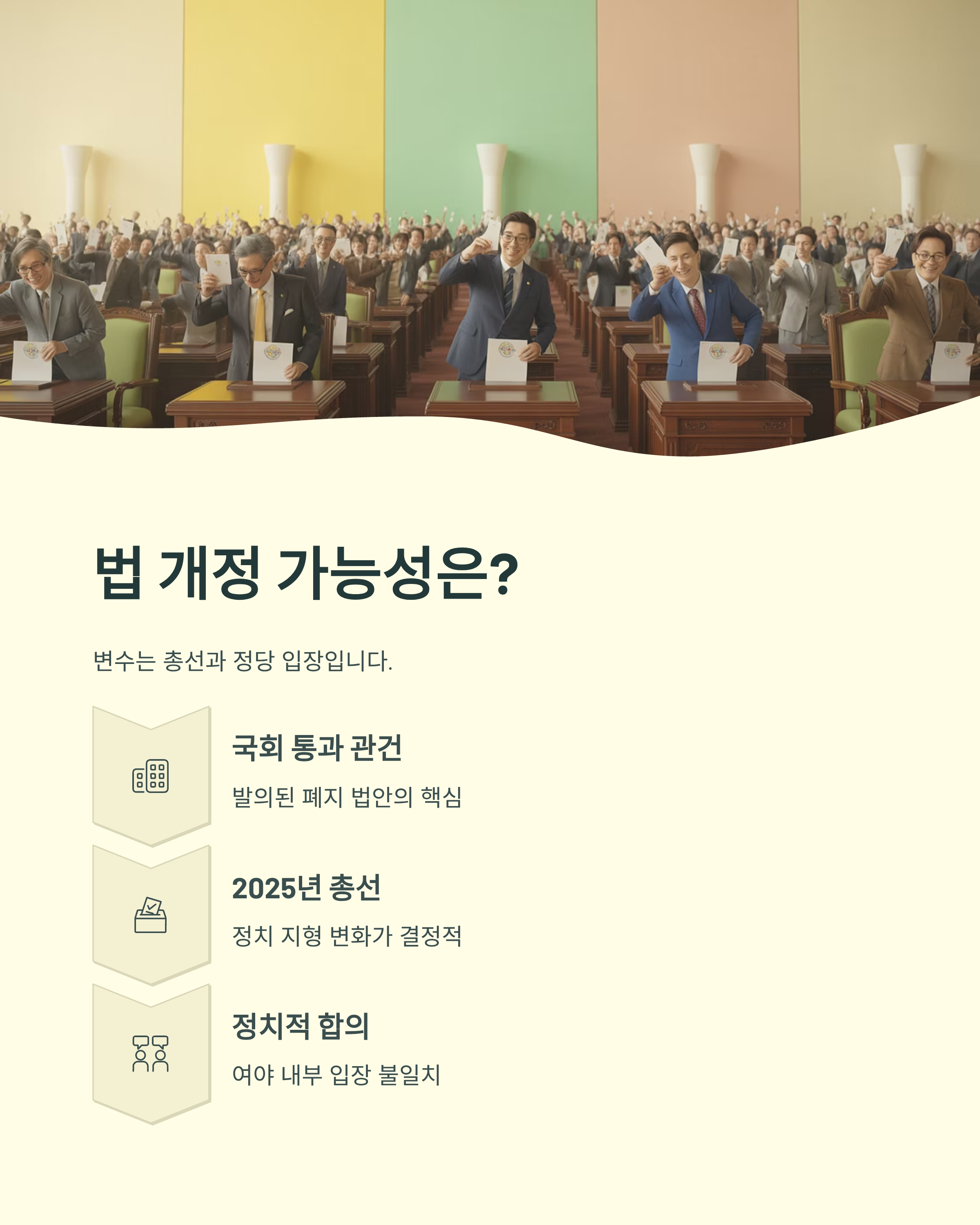 2025년 총선 이후 정치 지형에 따라 실제 통과 여부가 달라질 수 있습니다.