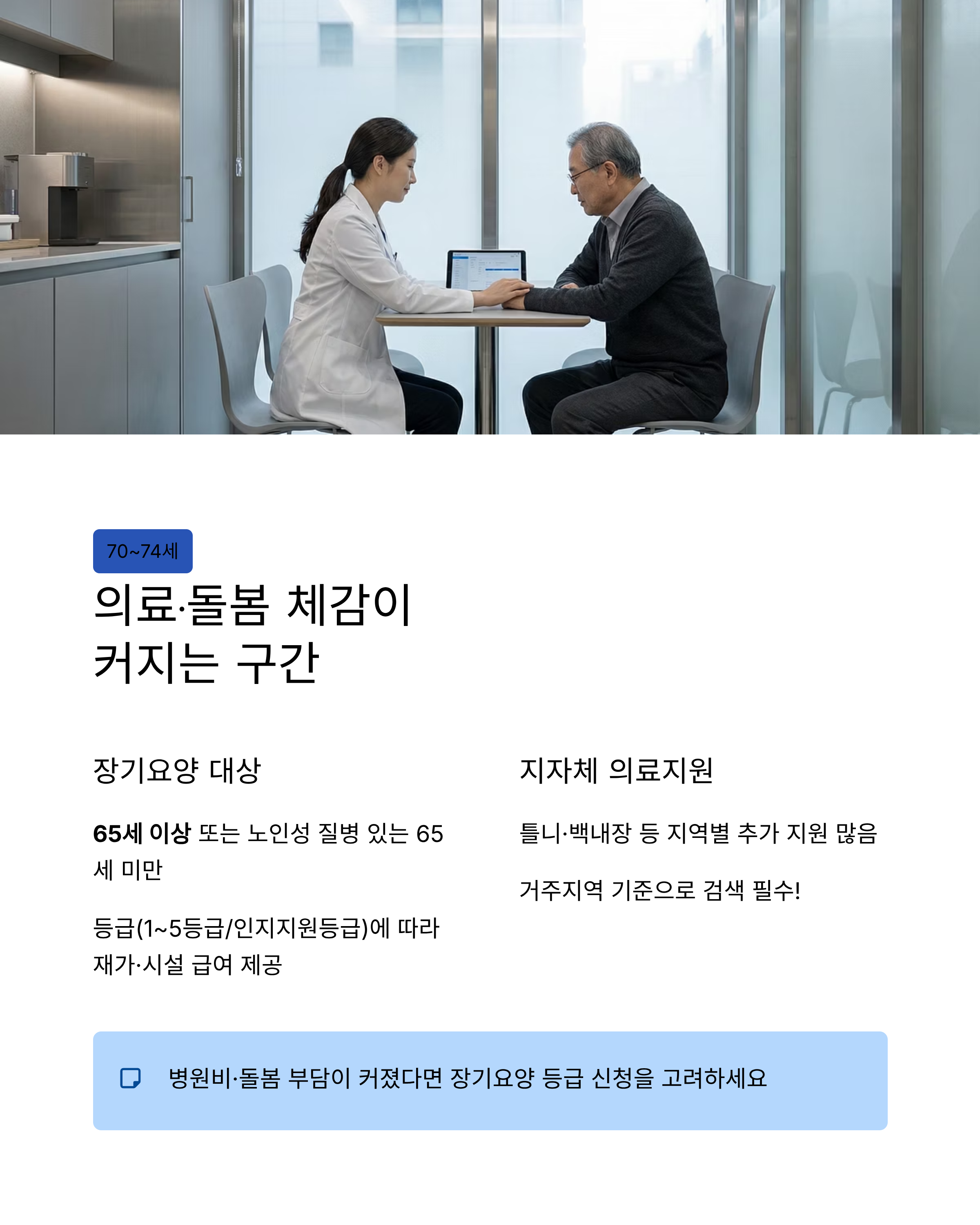 70~74세: ‘의료·돌봄’ 체감이 커지는 구간