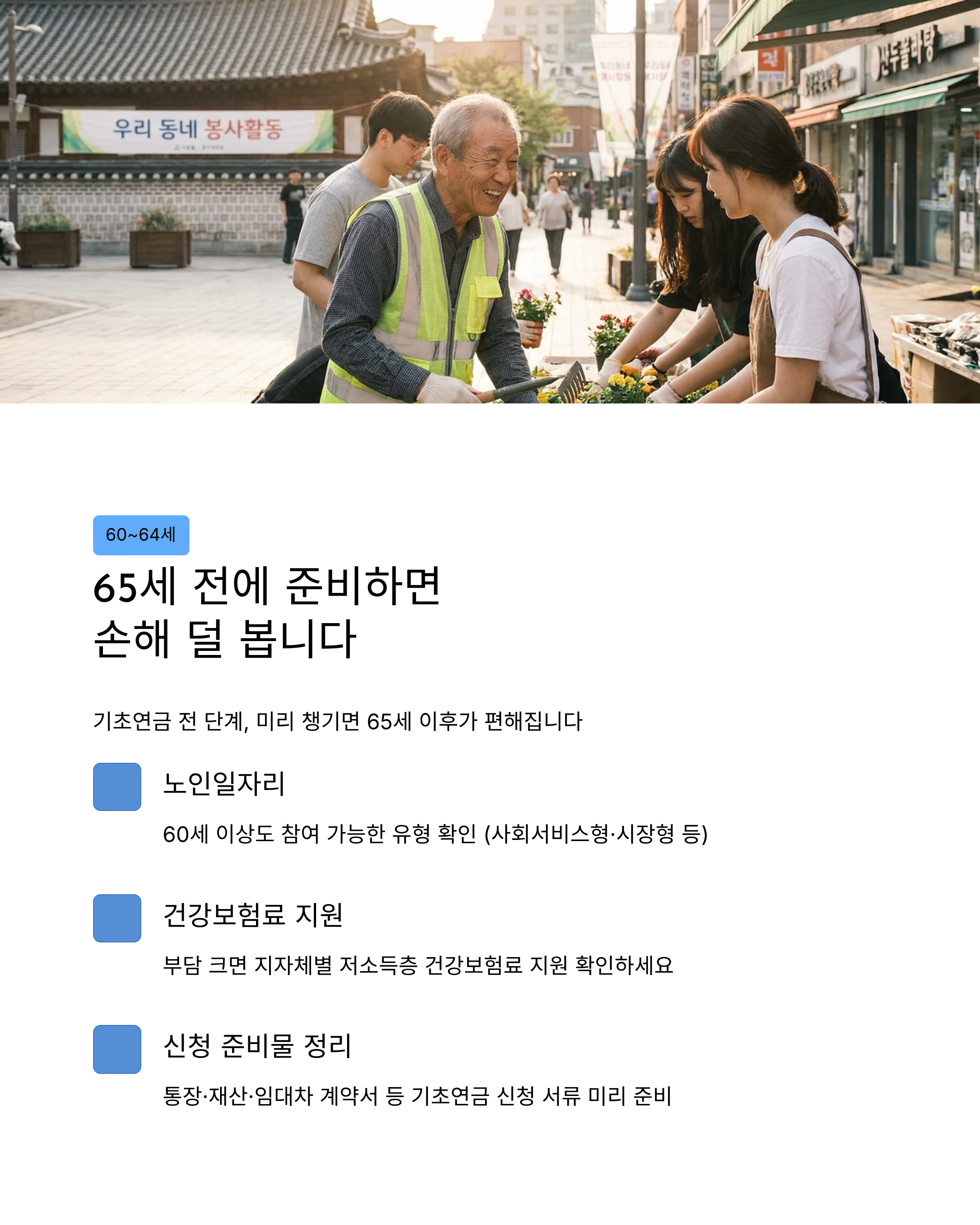 60~64세: ‘65세 전에 준비하면’ 손해 덜 봅니다