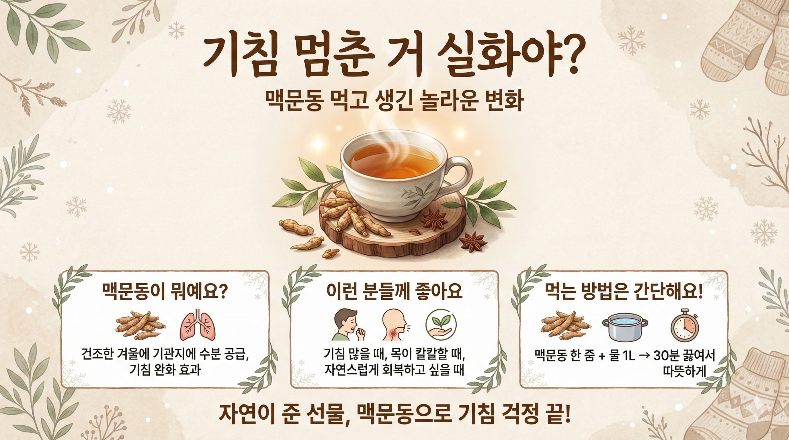 겨울철 마른기침과 가래로 고생 중이라면? 자연이 준 선물, 맥문동으로 달라진 일상을 경험해보세요. 직접 마셔본 리얼 후기와 함께 알려드릴게요.