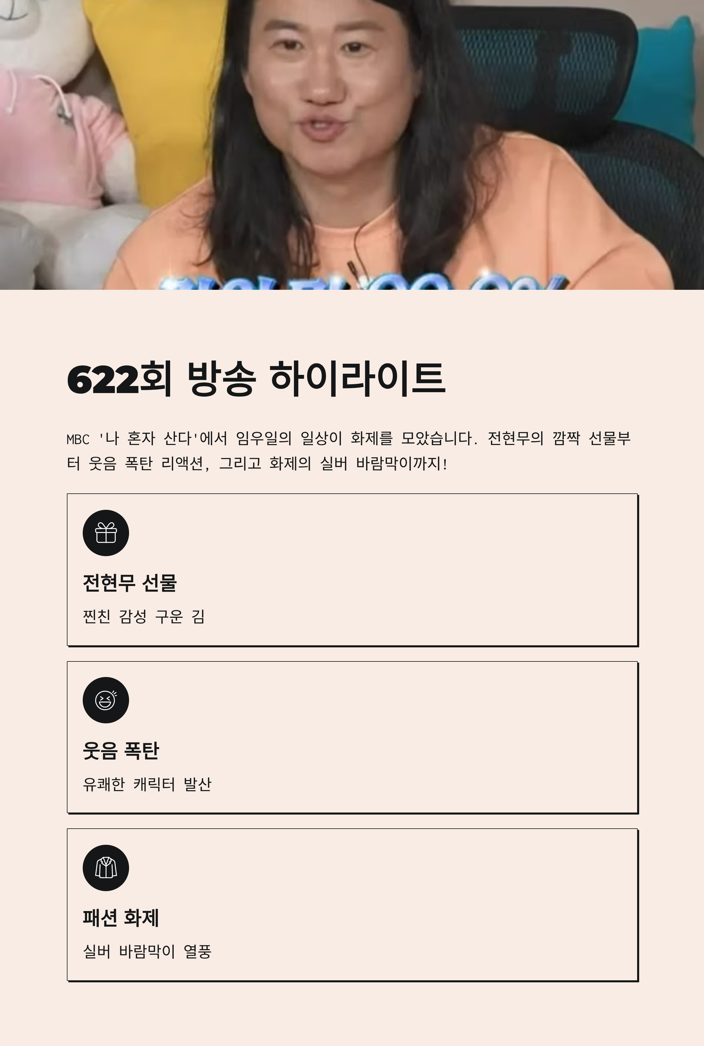 MBC 예능 ‘나 혼자 산다’ 622회 방송에서 임우일의 일상이 전파를 타면서 시청자들의 이목이 집중됐습니다. 전현무의 깜짝 선물부터, 입만 열면 터지는 ‘웃음 폭탄’ 리액션, 그리고 화제의 실버 바람막이까지! 마치 무지개 회원 인증이라도 하듯 임우일은 그만의 유쾌한 캐릭터로 순식간에 화제의 중심에 섰는데요. 오늘은 나혼산 속 임우일 관련 키워드를 한 번에 정리해드립니다.