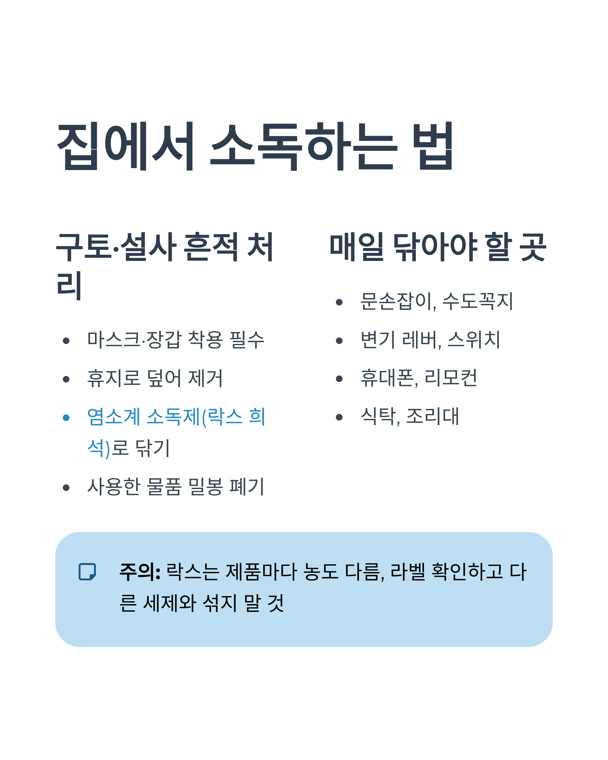 8) 집에서 소독하는 법: “염소계 소독”이 포인트