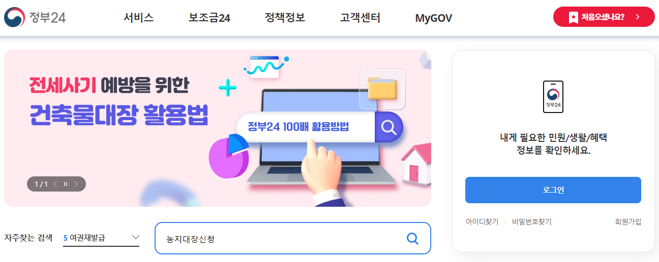 신청은 정부 24 인터넷이나 토지 관할 읍, 면 농지부에 방문하여 신청 가능합니다