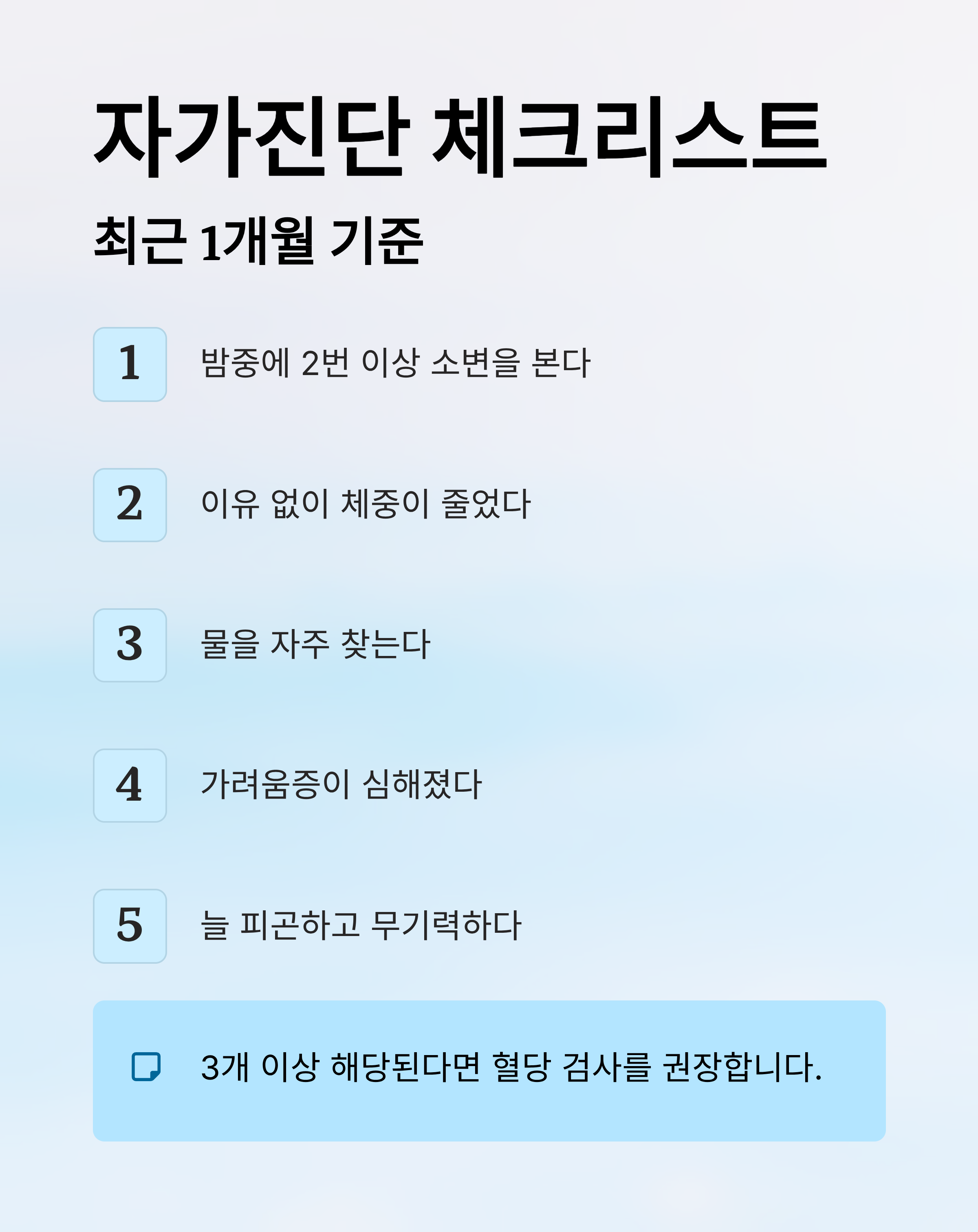 피로, 갈증, 소변 이상… 혹시 나도? 당뇨병 초기 신호 지금 확인하세요