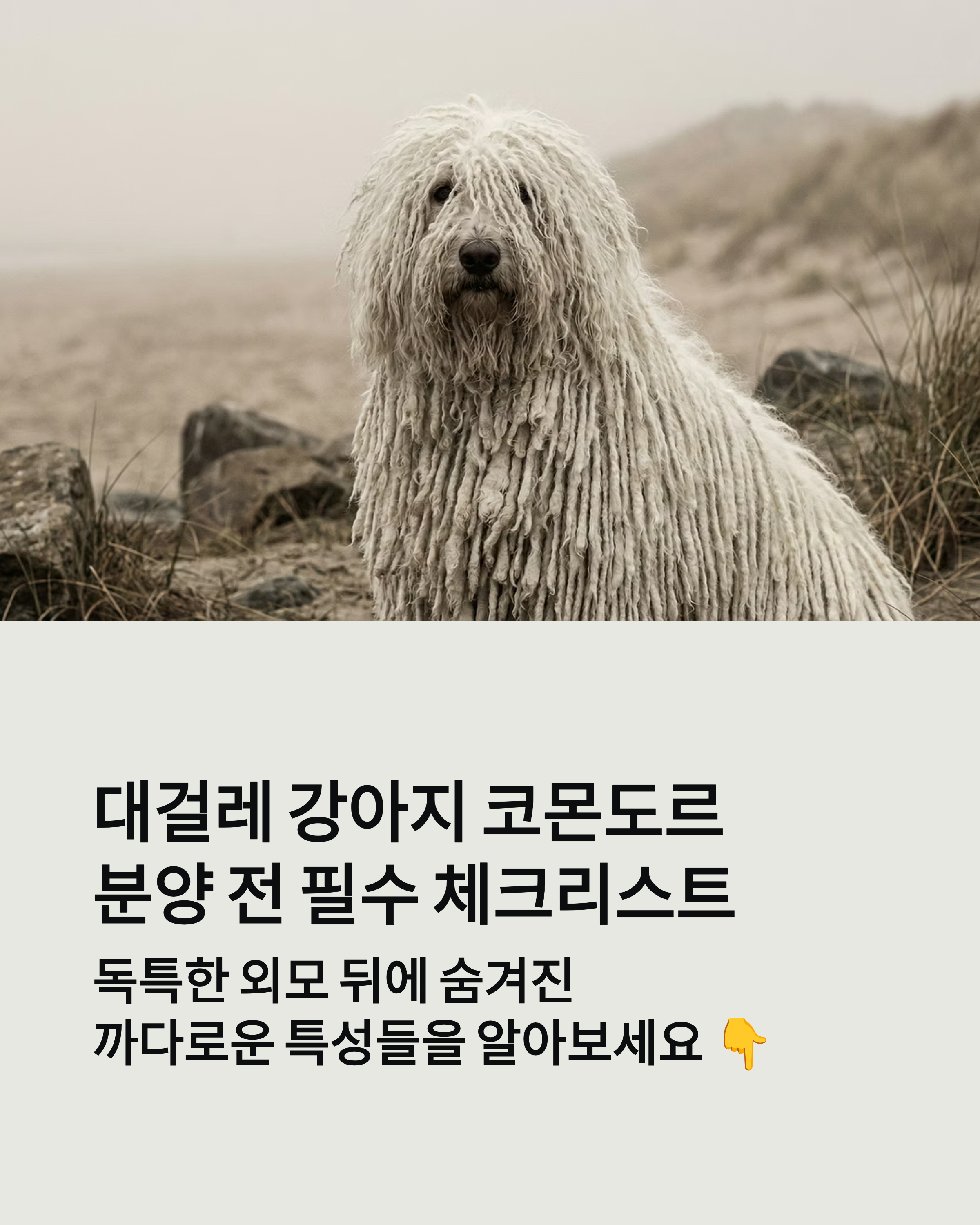 대걸레 강아지로 유명한 코몬도르, 외모만 보고 분양하면 큰일! 성격, 털 관리, 운동량, 초보자 추천 여부까지 제대로 알고 입양하세요. 코몬도르 vs 풀리 차이도 함께 정리.
