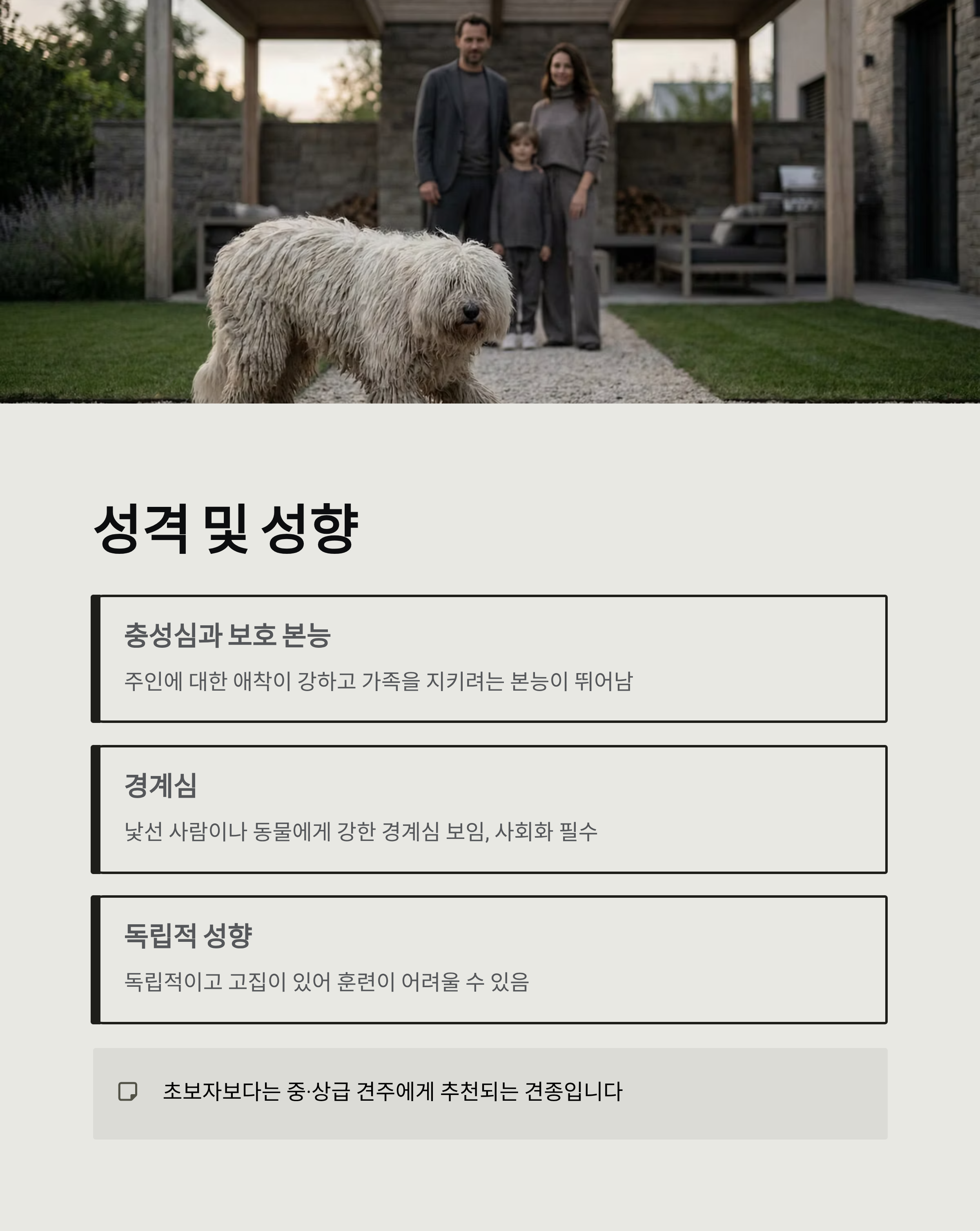 - 초보자보다는 중·상급 견주에게 추천되는 견종