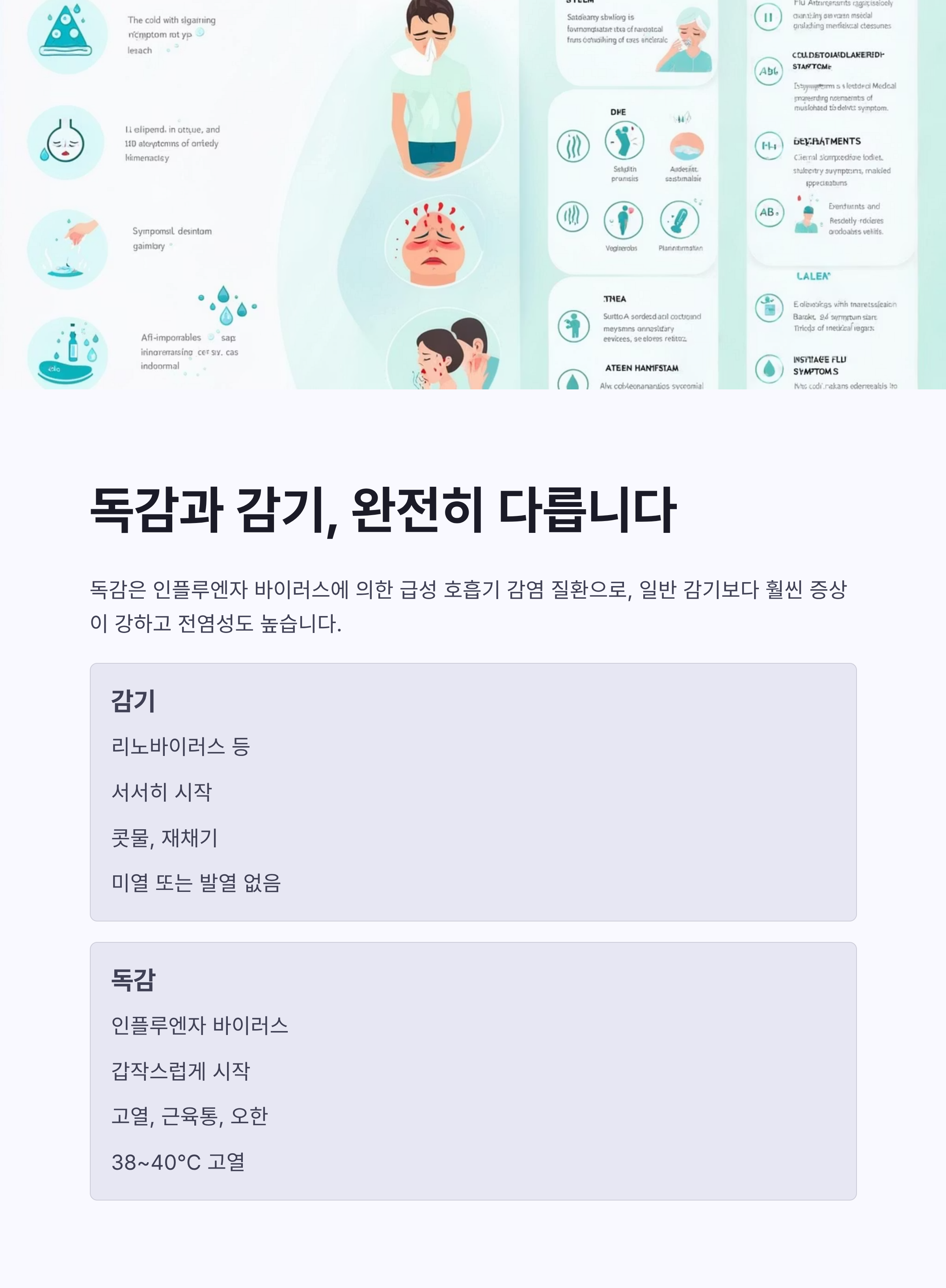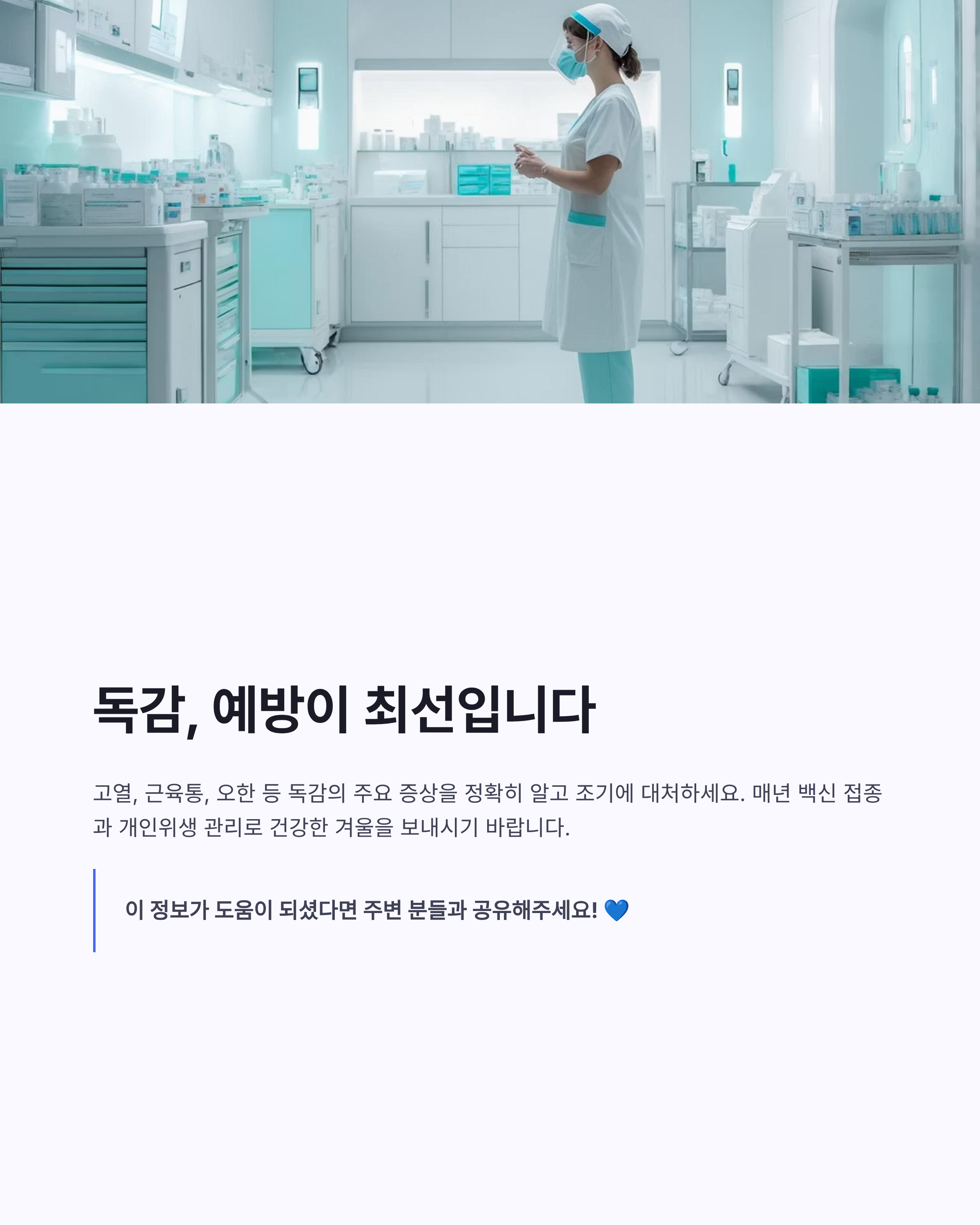 이번 포스팅에서는 독감의 주요 증상, 감기와의 차이, 예방과 치료 방법까지 상세히 정리해드립니다.