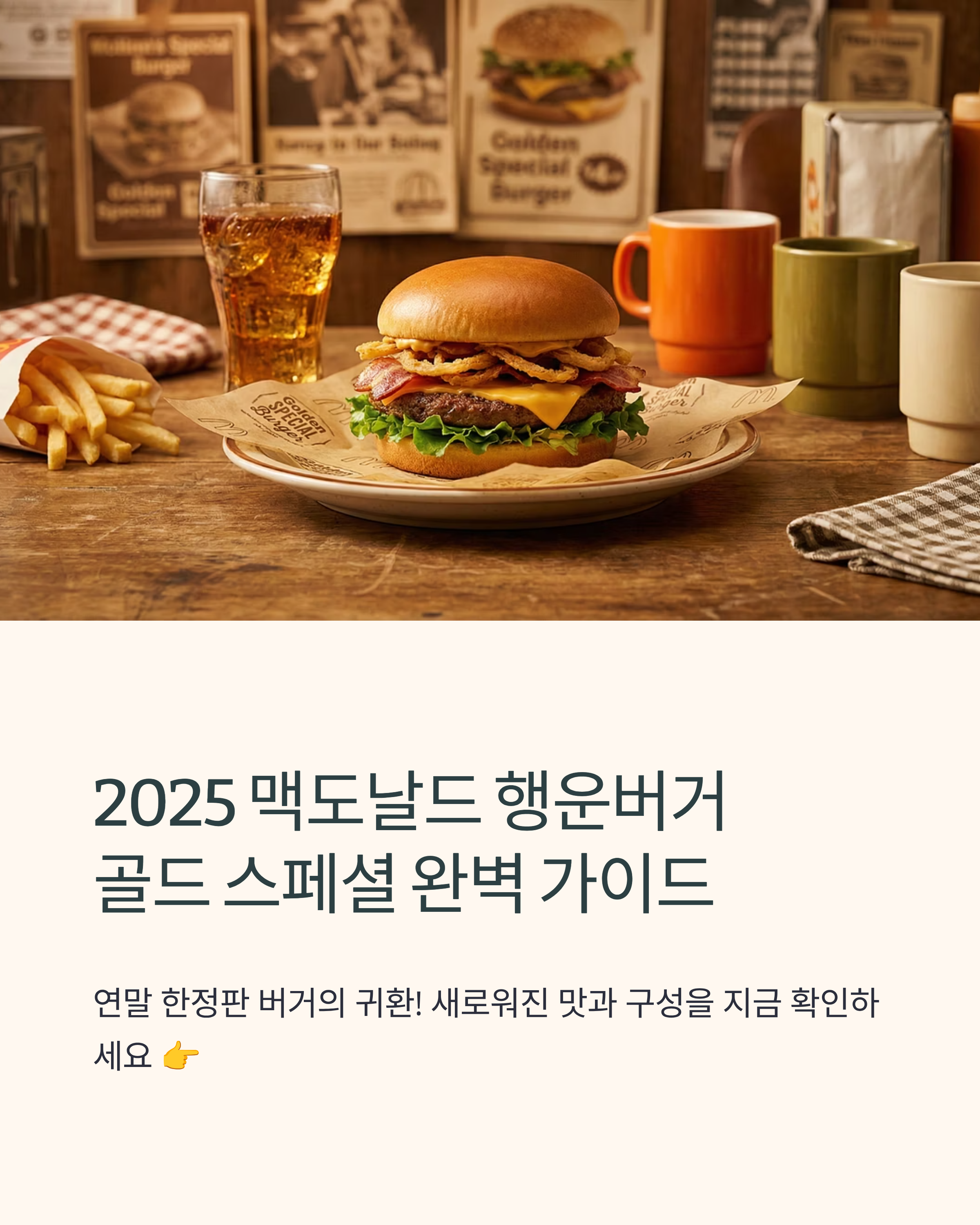 맥도날드 2025 행운버거 골드 스페셜 출시! 킬리후라이 토핑, 신메뉴 구성, 가격 정보, 실물 후기, 판매 기간까지 완벽 정리. 지금 확인하세요.