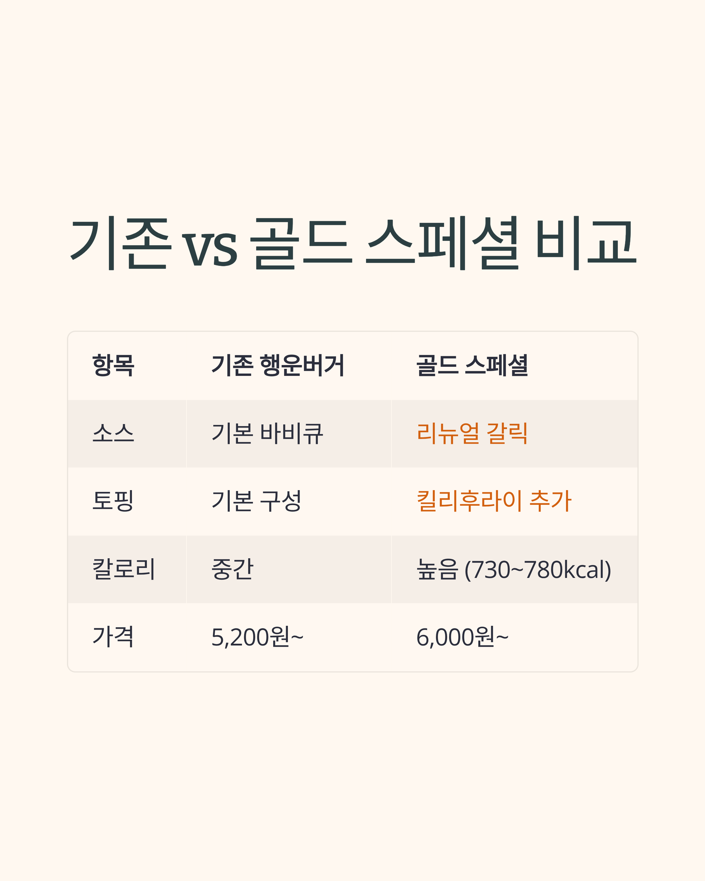 항목기존 행운버거골드 스페셜
