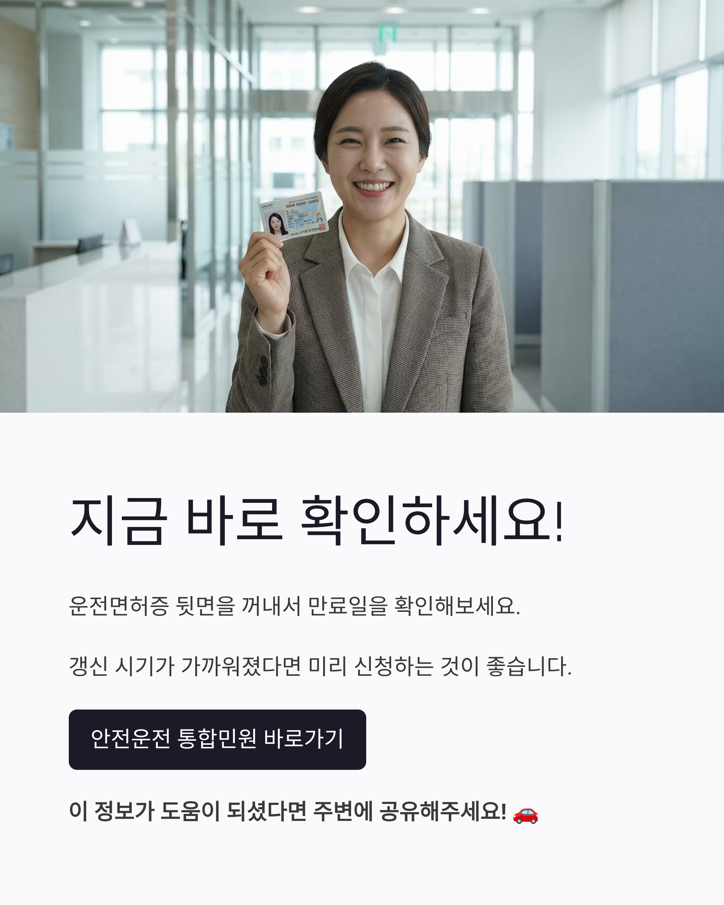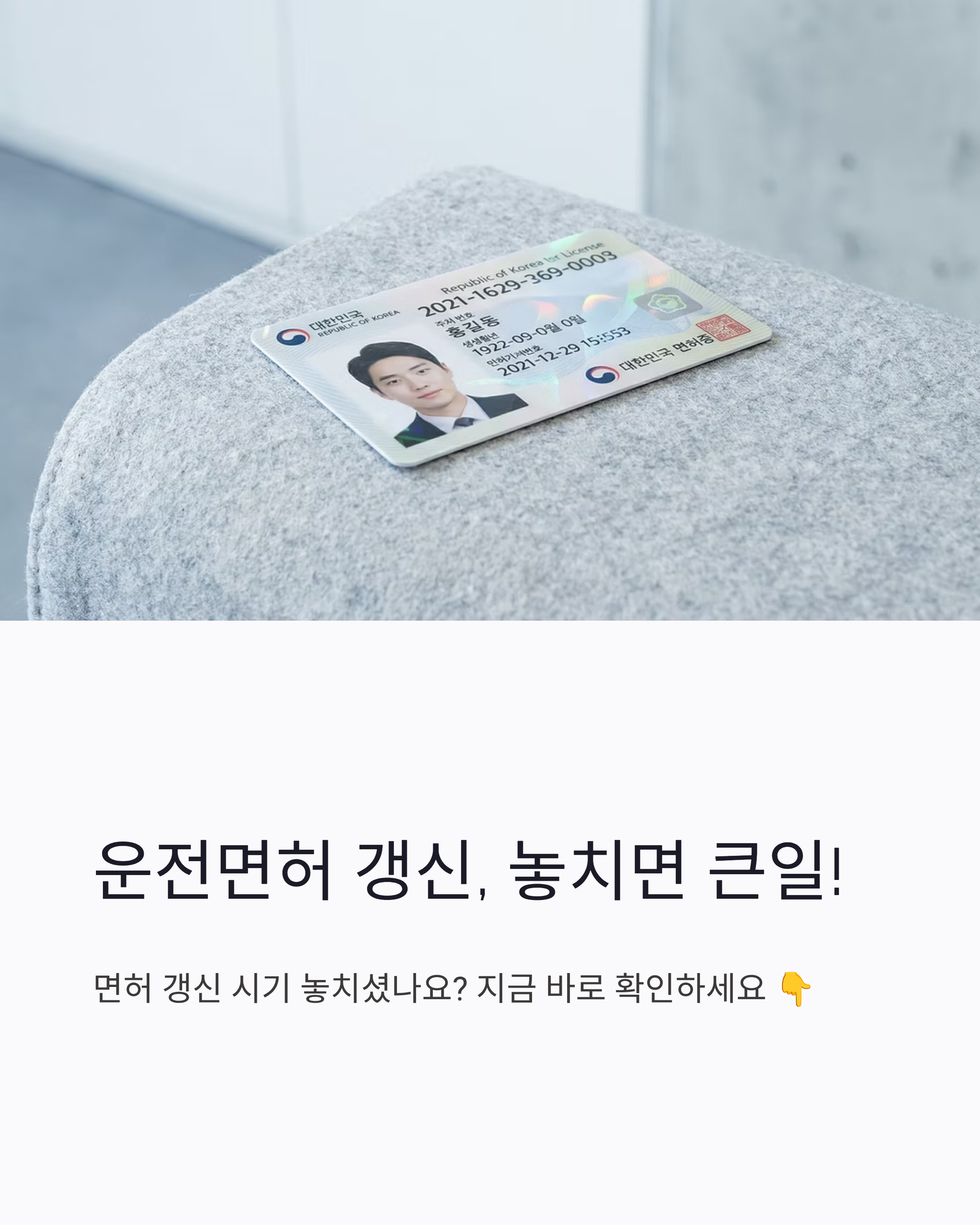 지금 운전면허증 꺼내서 뒷면을 확인해보세요! 만료일이 가까워졌다면 미리미리 신청하세요 😊