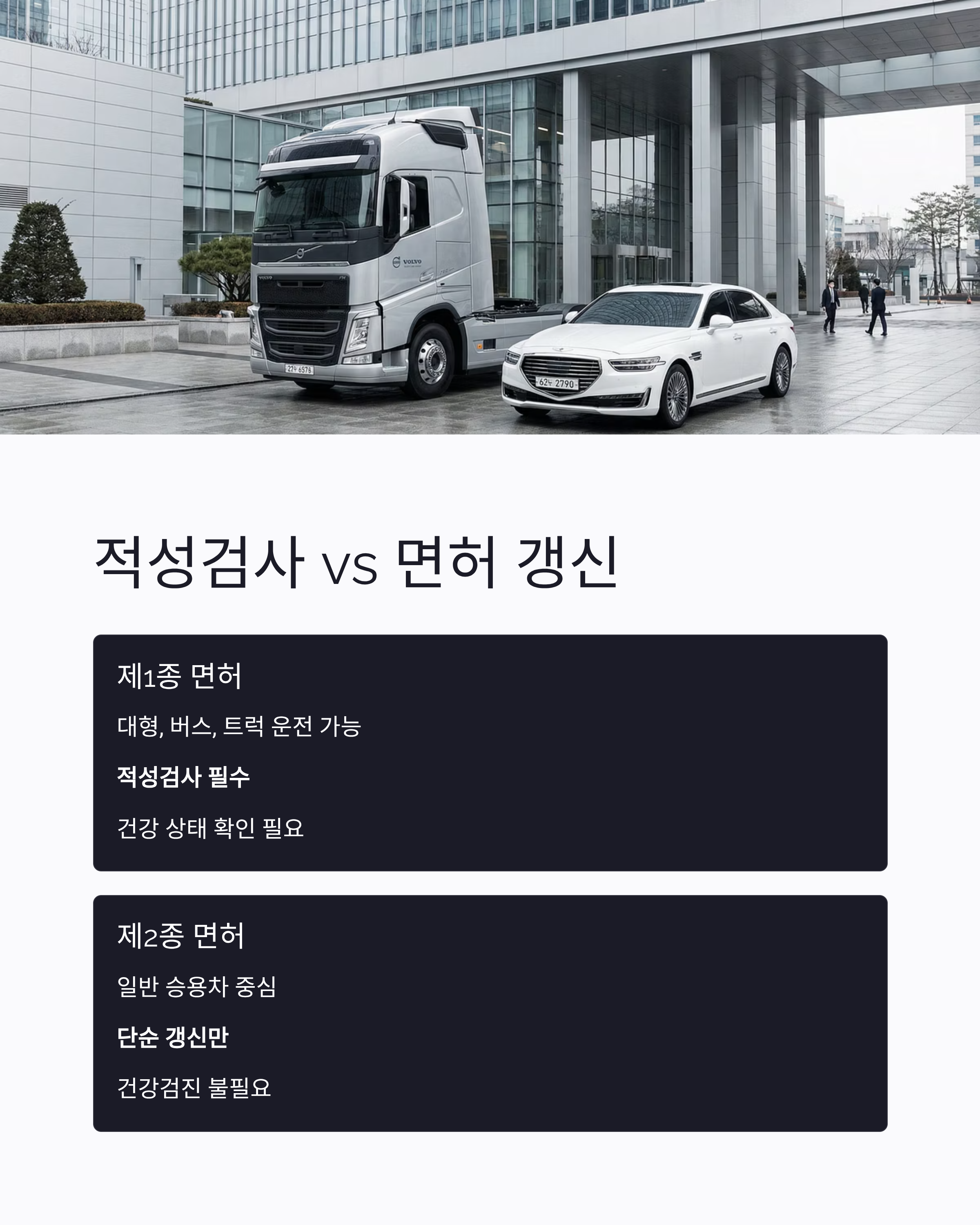 - 제1종은 ‘적성검사’, 제2종은 ‘면허 갱신’