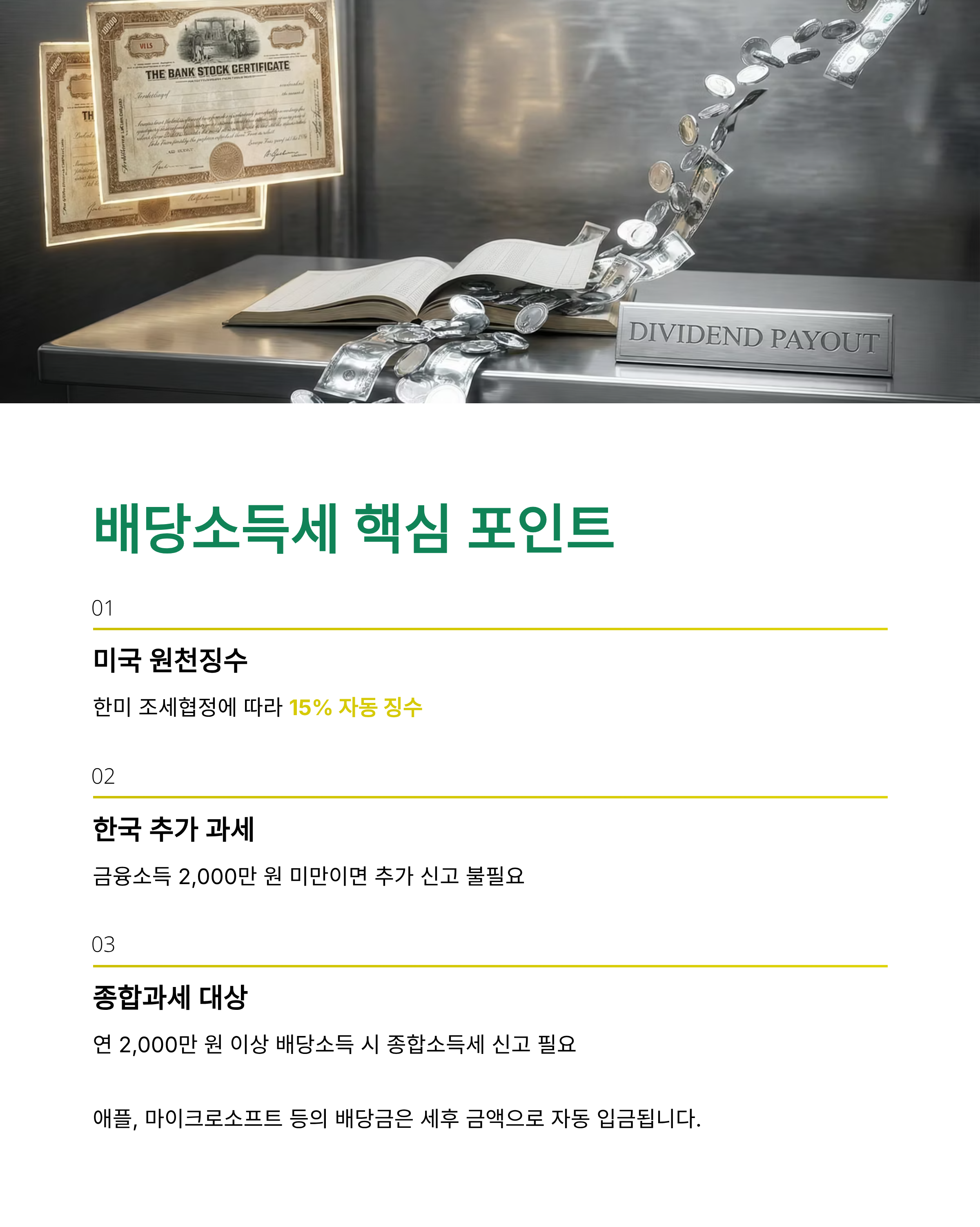 - 한국에서 추가 과세 없음: 금융소득종합과세 대상이 아니라면 추가 신고 X