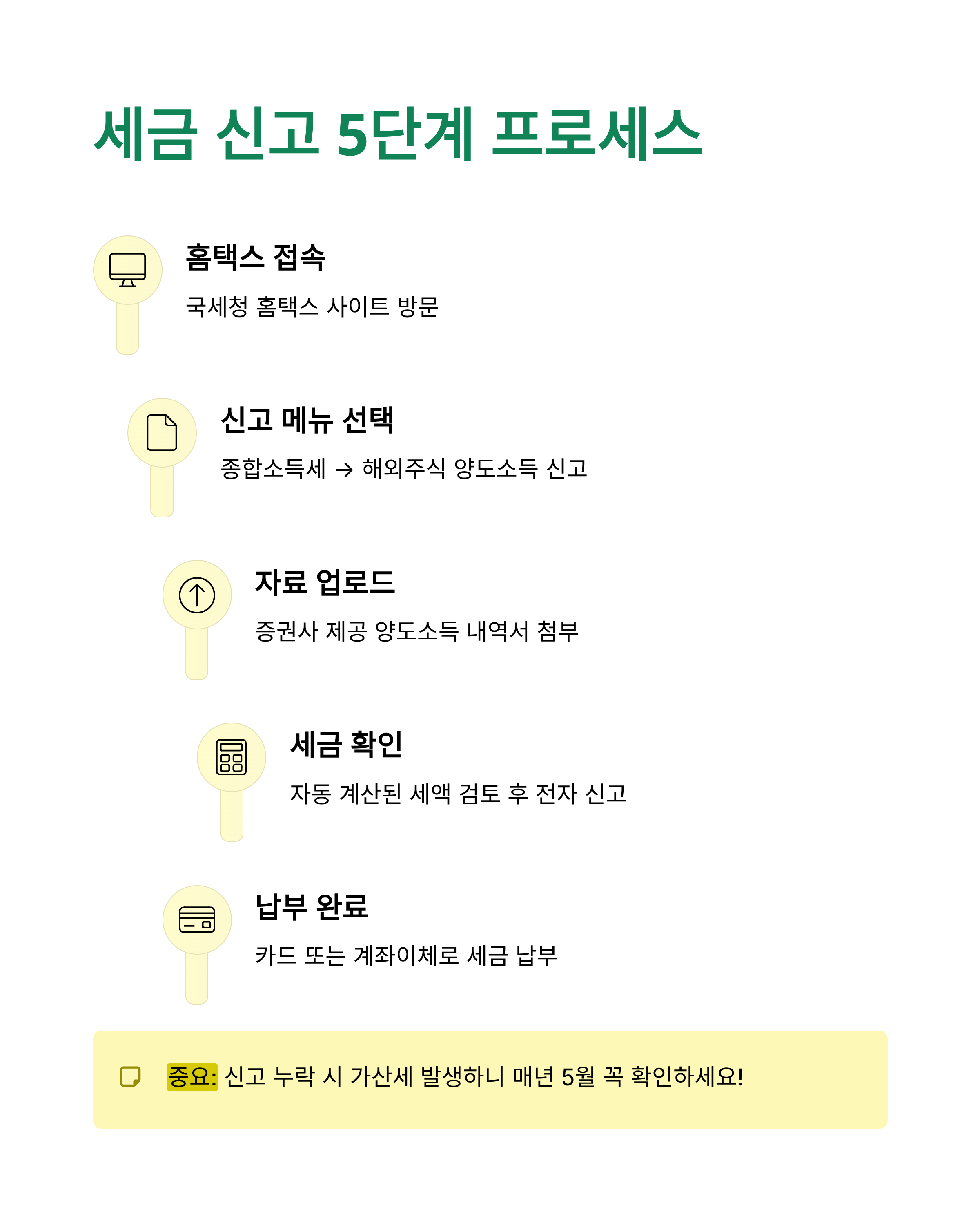Tip: 증권사에서 연말에 제공하는 **'해외주식 양도소득 내역서'**를 꼭 확인하세요.