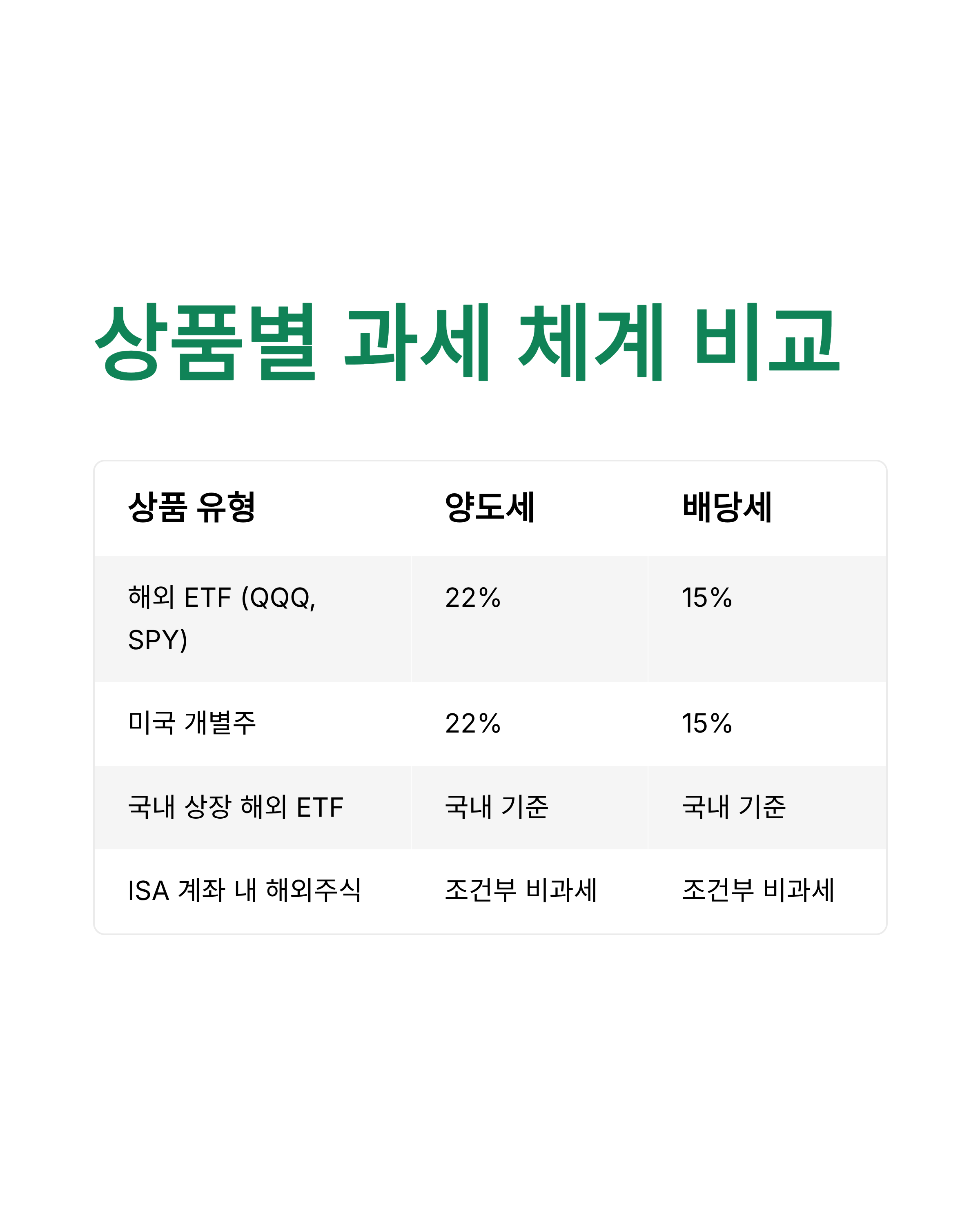 | 해외 ETF (예: QQQ, SPY) | 양도세 + 배당세 부과 |