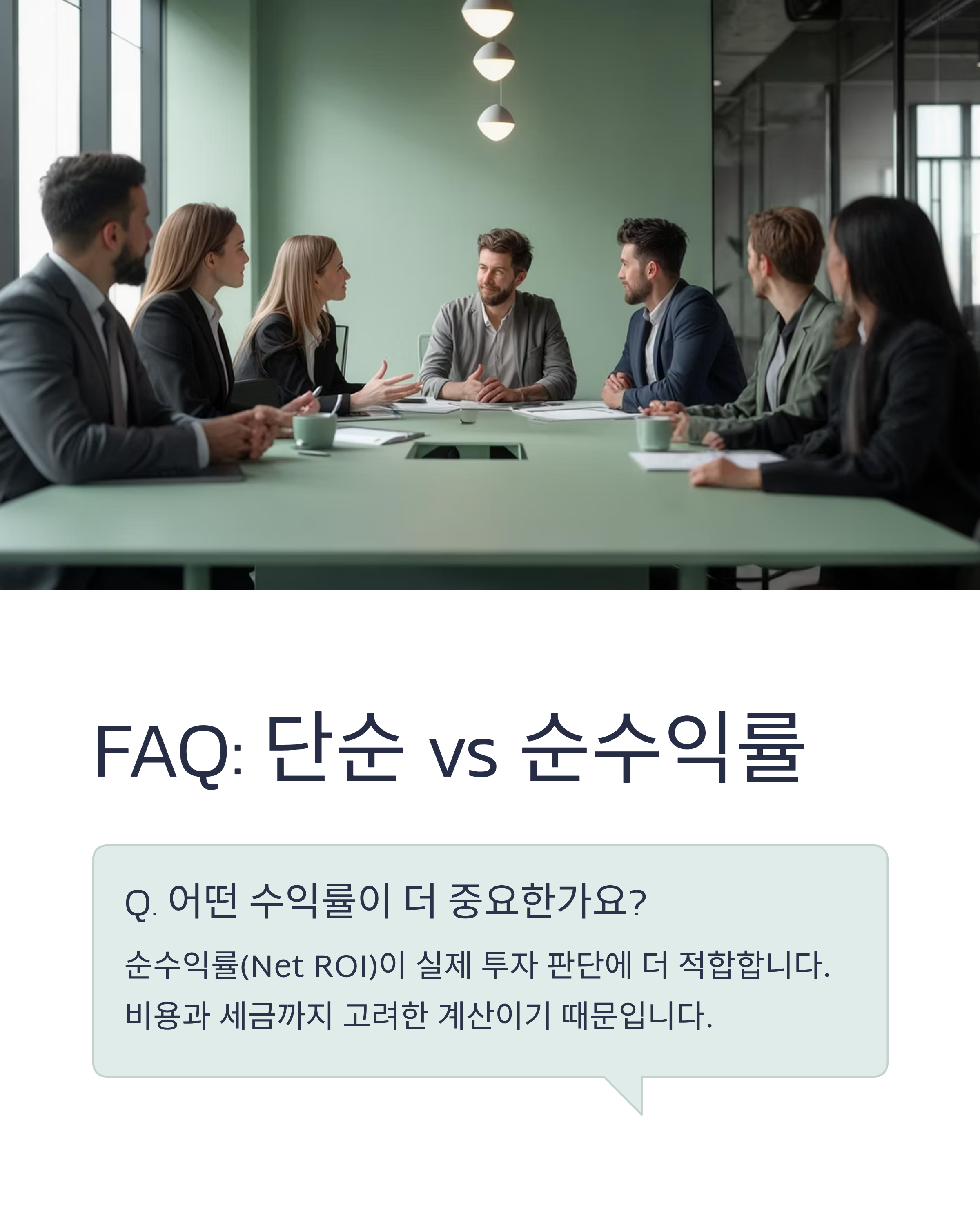 A: *์์์ต๋ฅ (Net ROI)*์ด ์ค์ ํฌ์ ํ๋จ์ ๋ ์ ํฉํฉ๋๋ค.