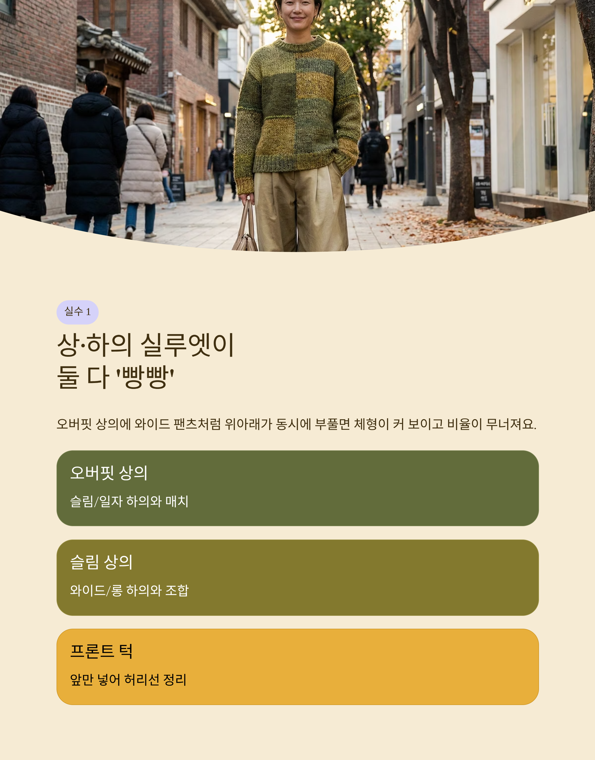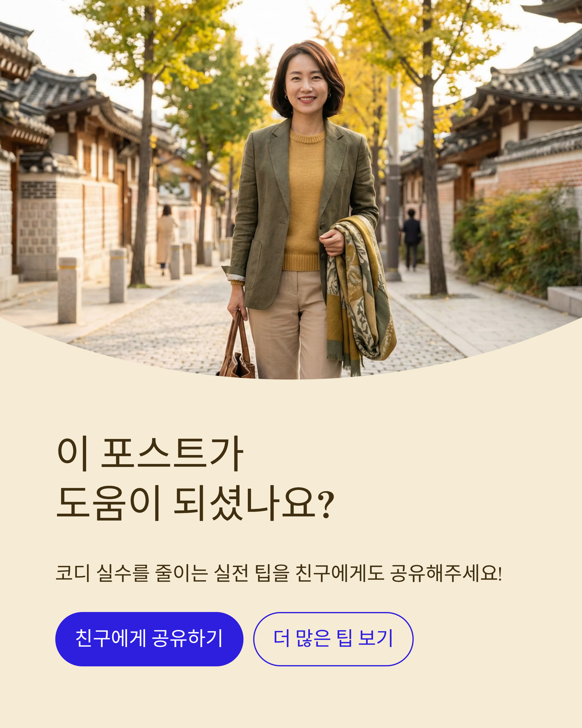 오늘은 누구나 한 번쯤 하는 코디 실수 5가지와, 바로 적용 가능한 수정 방법을 같이 정리해볼게요.