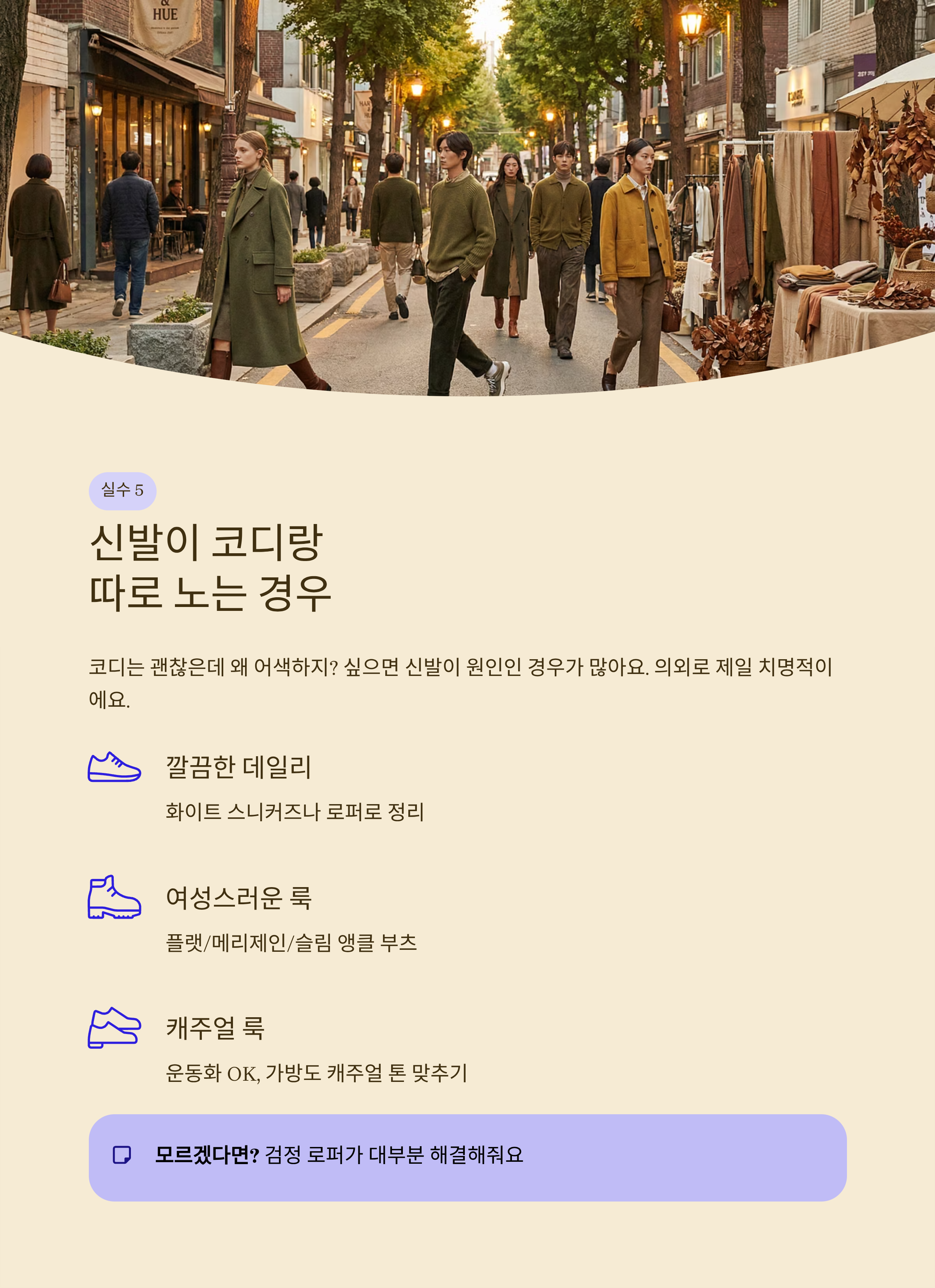 코디는 괜찮은데 “왜 어색하지?” 싶으면 신발이 원인인 경우가 많아요.