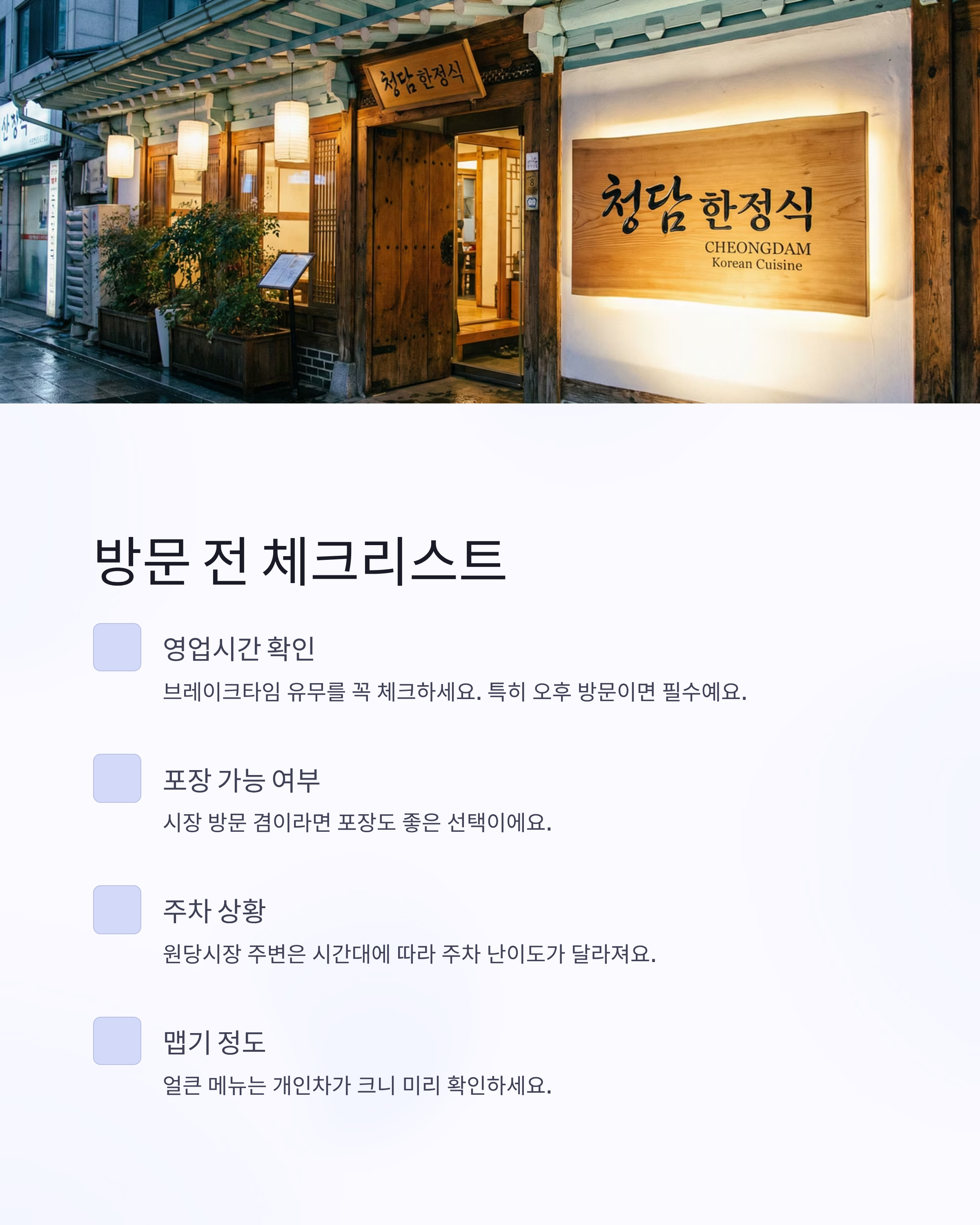 - 영업시간/브레이크타임 유무(특히 오후 방문이면 필수)