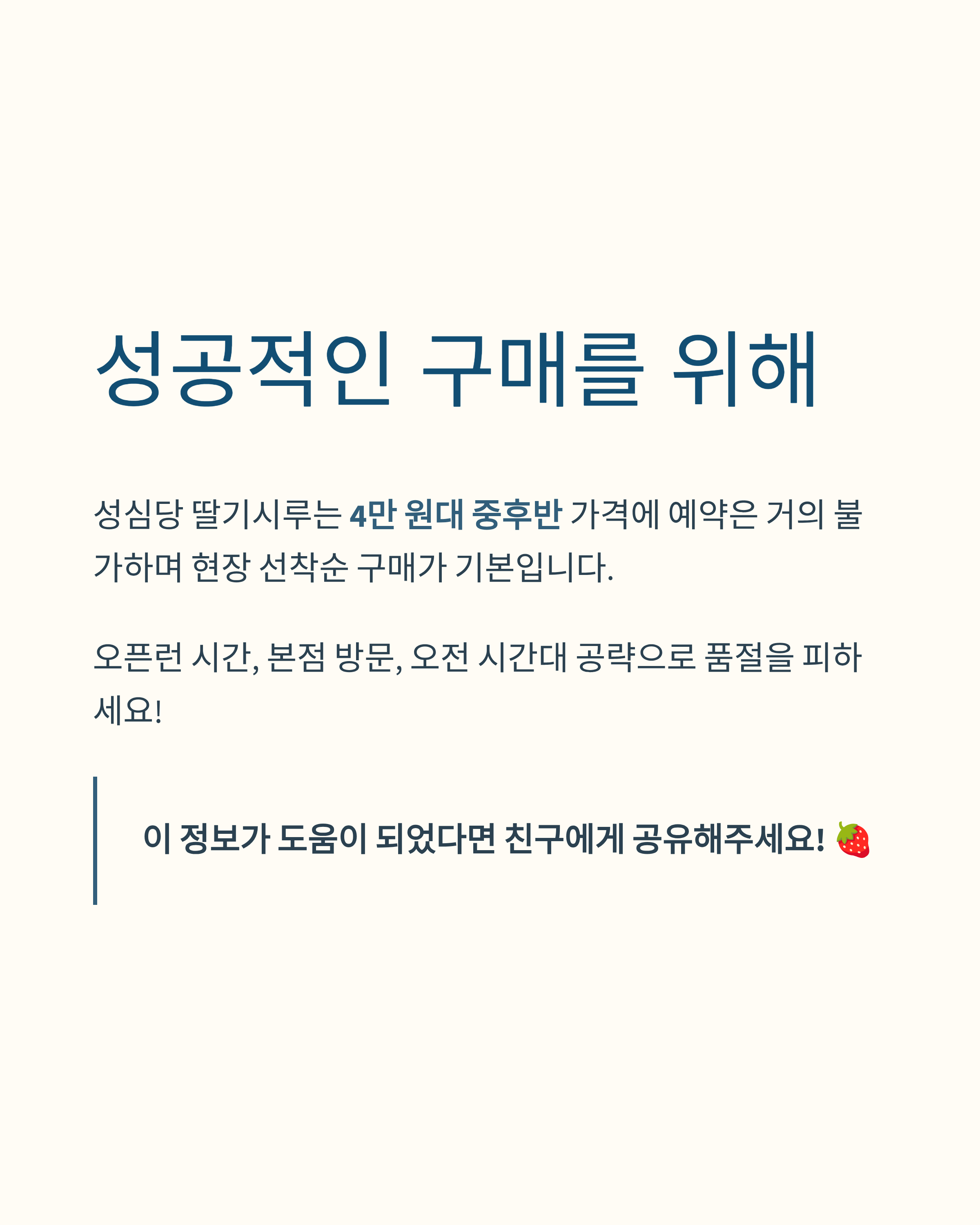 딸기시루는 당일 생산·당일 판매 원칙으로 운영되어 선착순 현장 구매가 기본입니다.