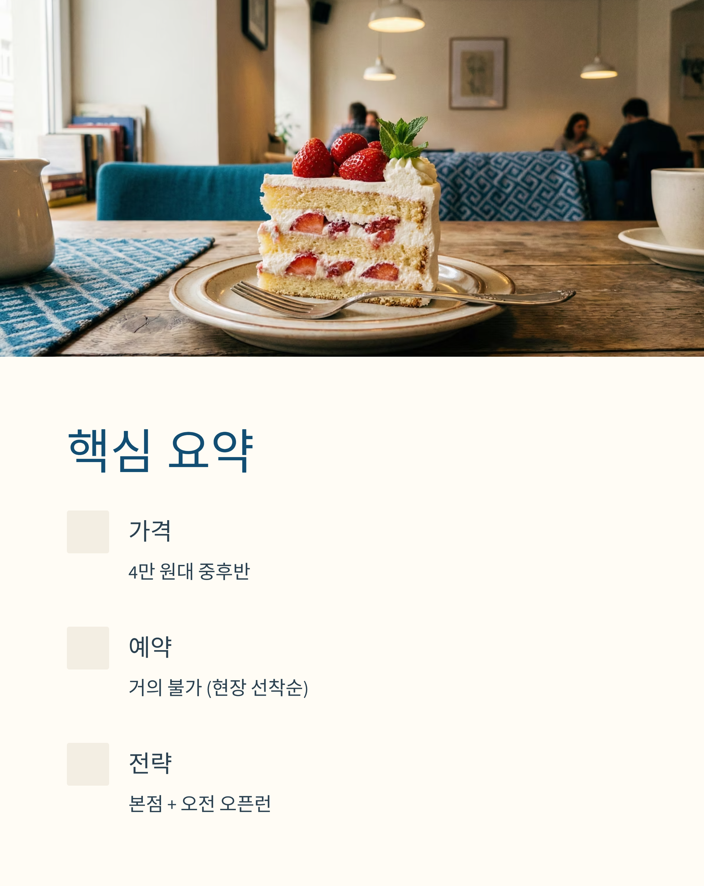 - 품절 시 딸기 생크림·제철 과일 케이크도 만족도 높음