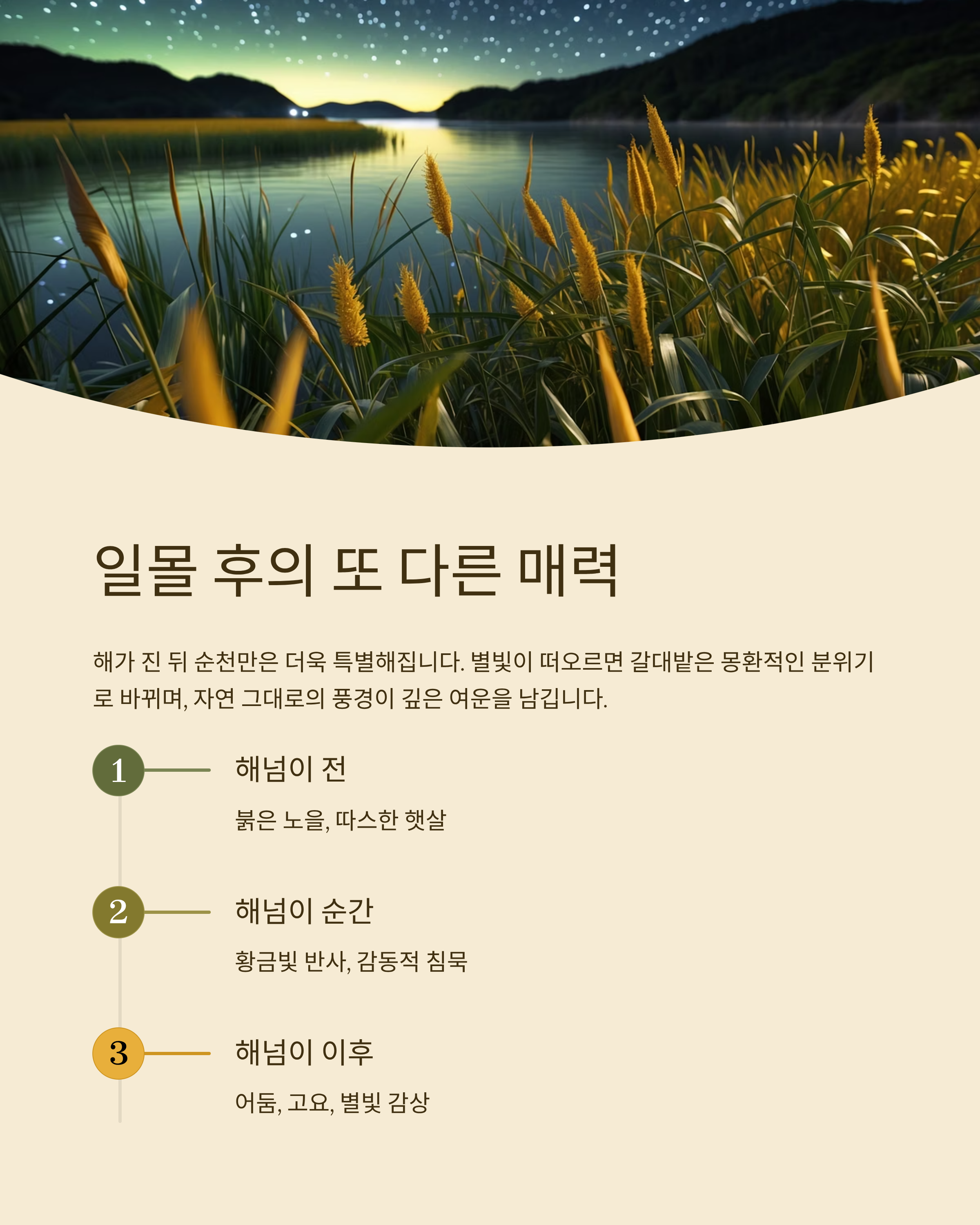 - 해가 완전히 진 후 10분간은 조용히 머물기 – 그 여운이 진짜입니다