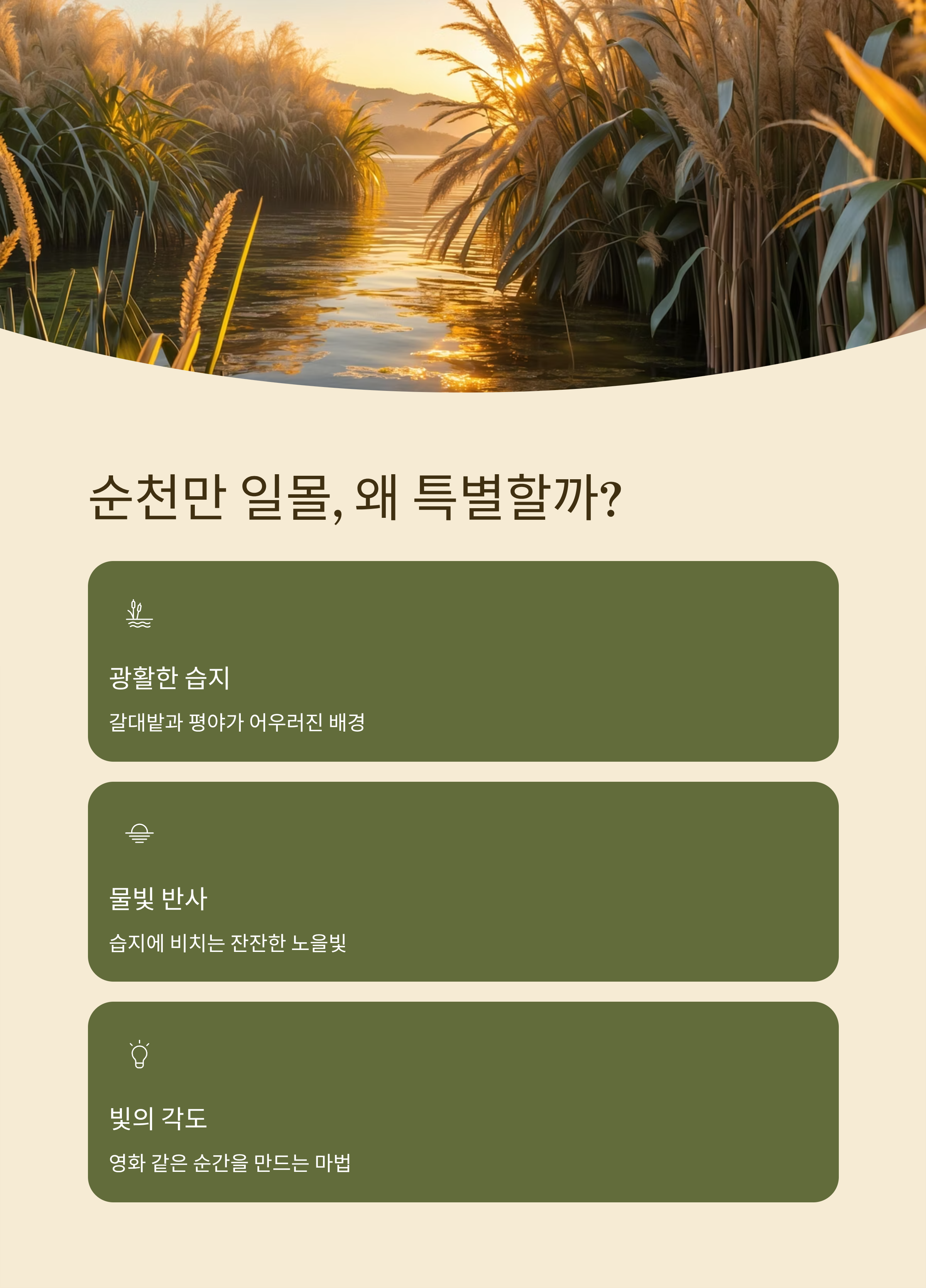 이번 글에서는 순천만 일몰의 매력을 중심으로, 해넘이 명소 정보와 감상 포인트까지 함께 소개해드릴게요.