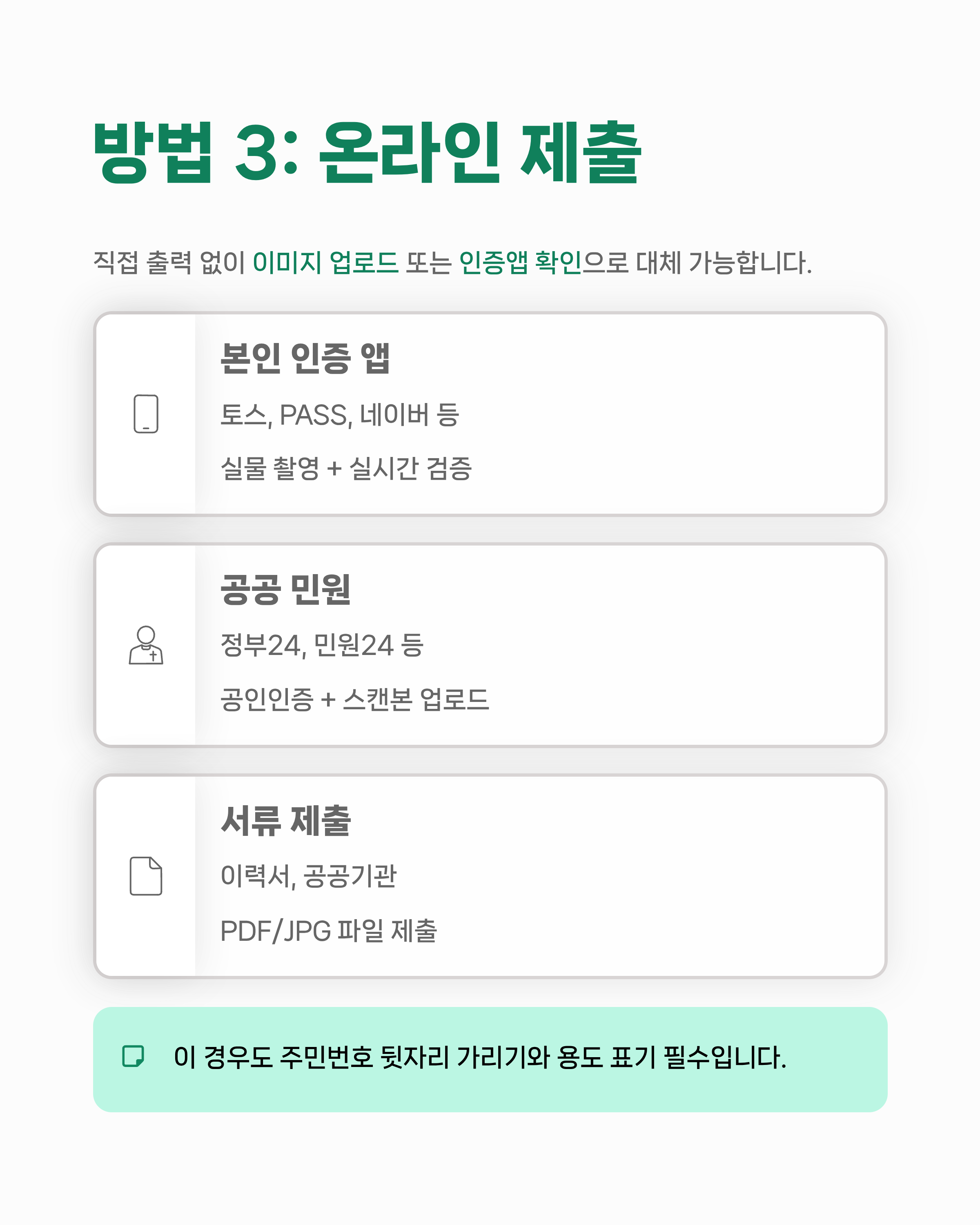 | 이력서, 공공기관 제출 | 사본 파일(PDF/JPG) 제출 요구 가능 |