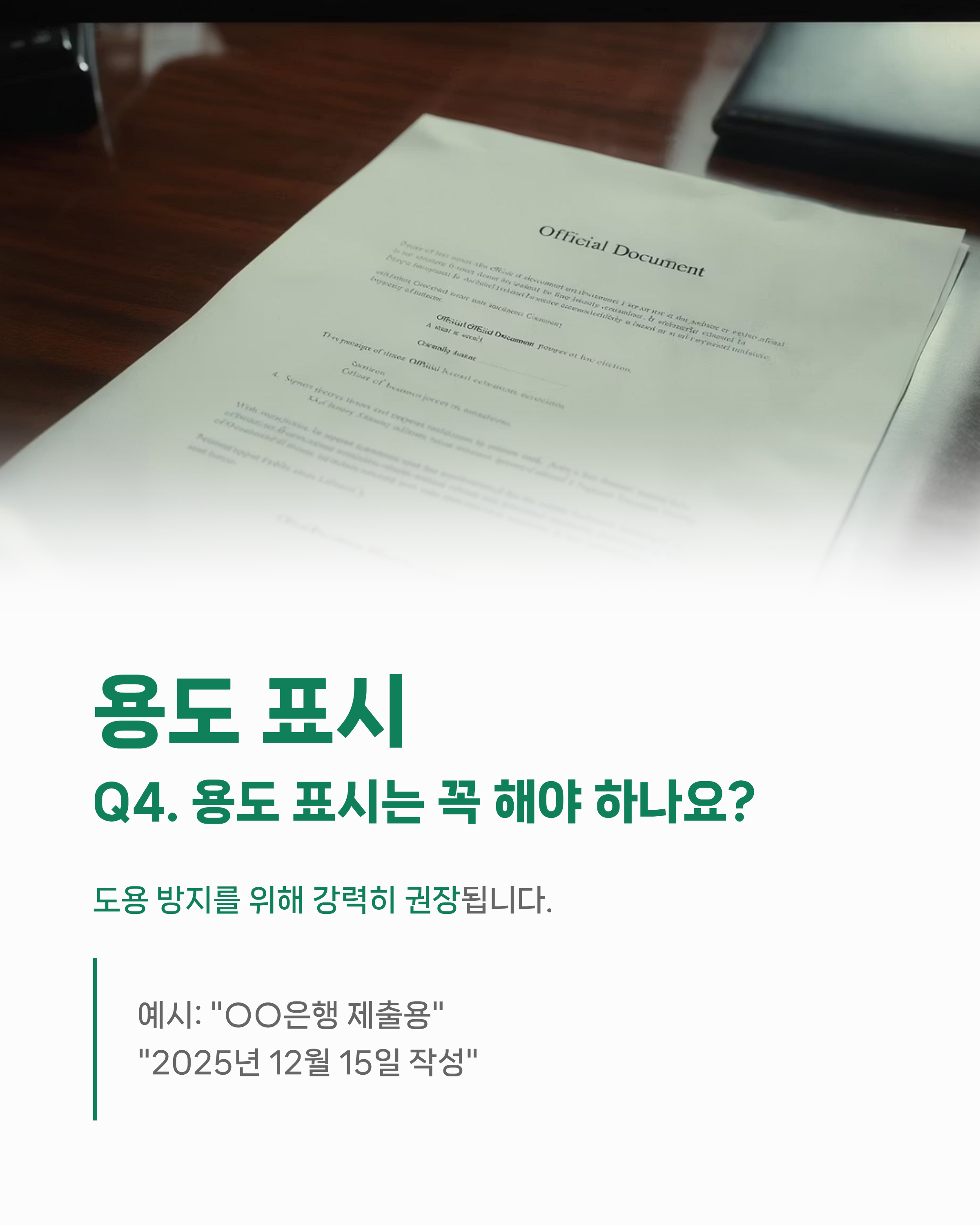 예) “○○은행 제출용”, “2025년 12월 15일 작성” 등