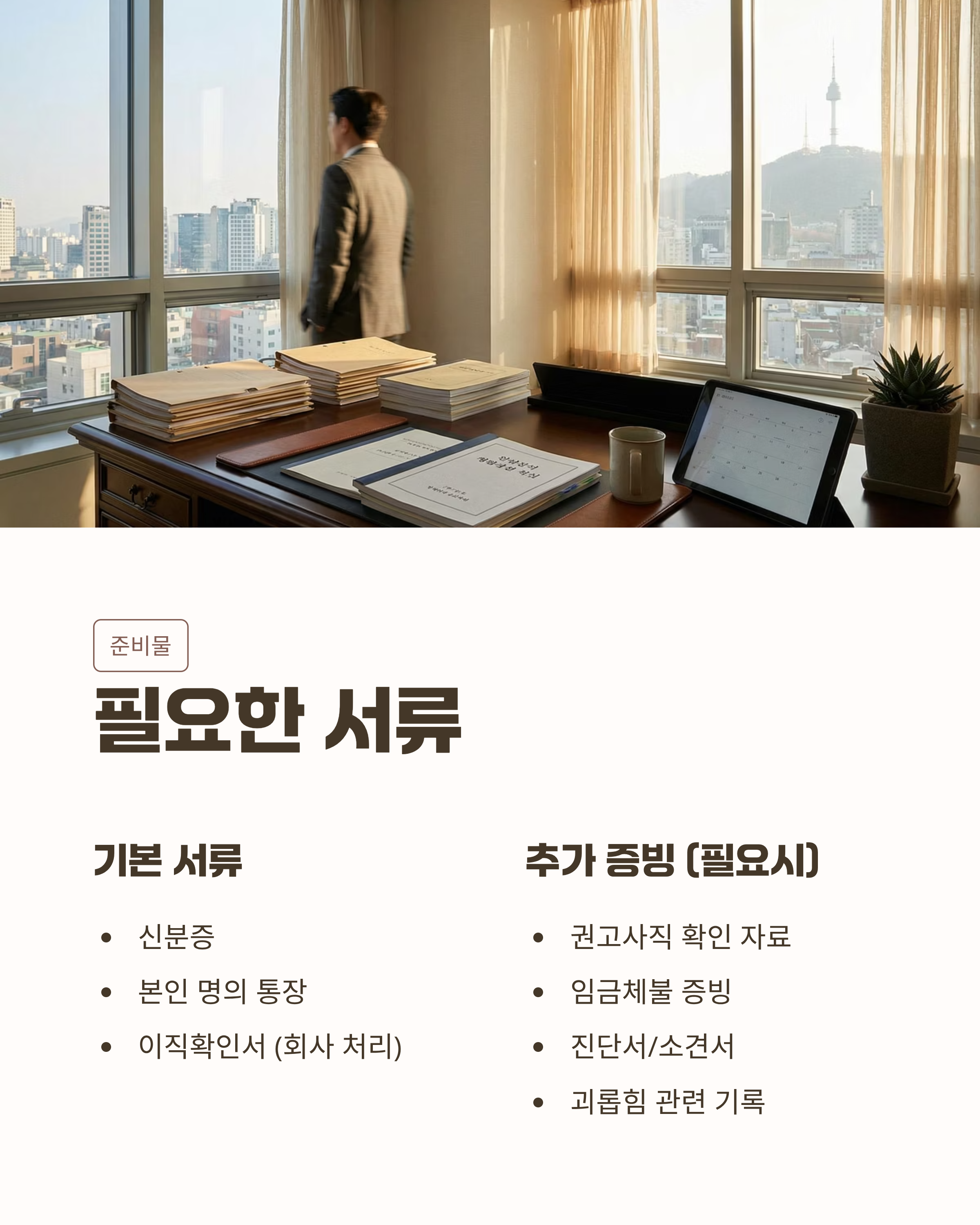 - 필요 시: 근로계약서, 급여명세서, 출퇴근 기록 등