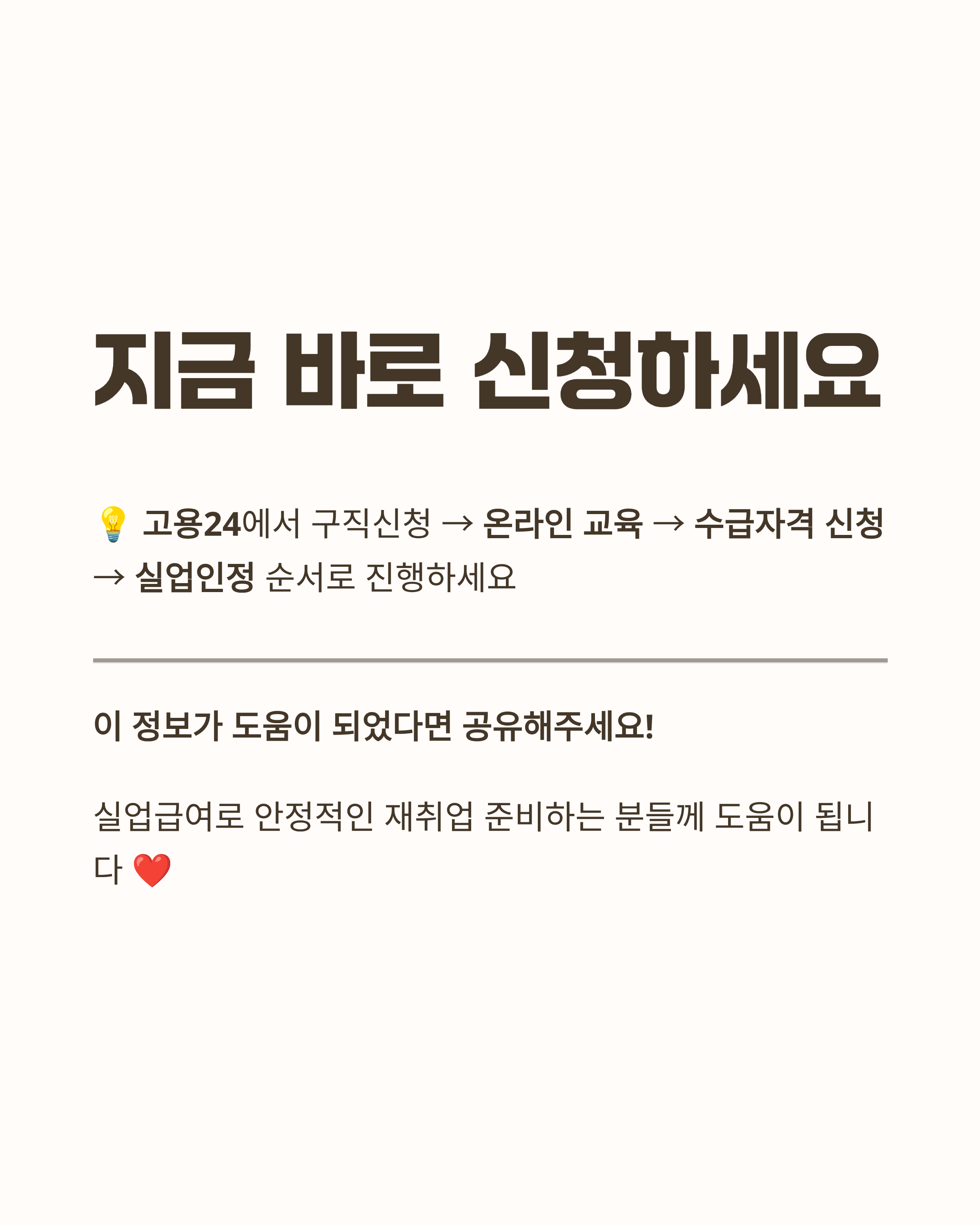 - 개인 상황에 따라 **관할 고용센터 방문 일정(설명회/초기상담/1차 실업인정 교육)**이 안내될 수 있으니, 안내 메시지대로 따라가면 돼요.