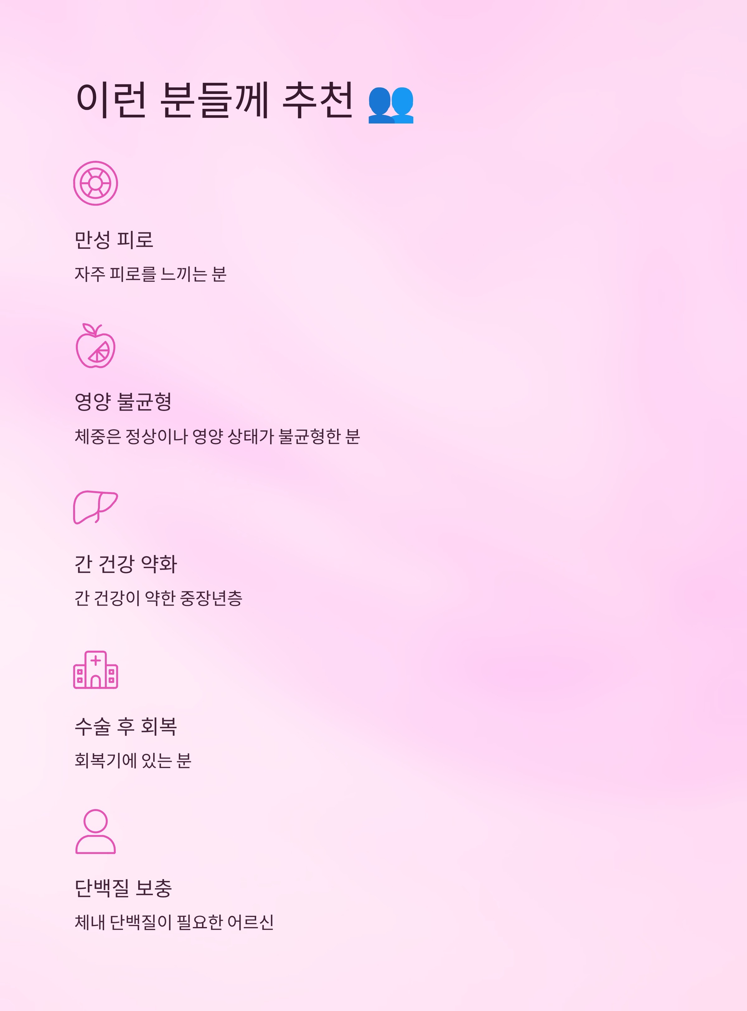 혈액 부족, 간 기능 이상, 영양 결핍 시 치료 목적으로도 사용됩니다.