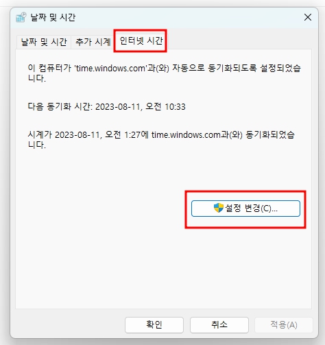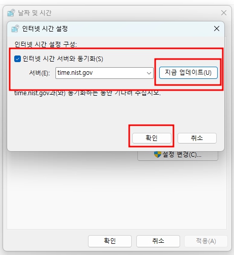 시간동기화 설정을 시작하였으나, 잘 되지않고 오류가 발생