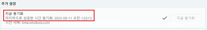 3. "자동으로 시간 설정" 켬 / "자동으로 표준 시간대 설정" 켬으로 한 후 "지금 동기화" 를 선택하면 끝