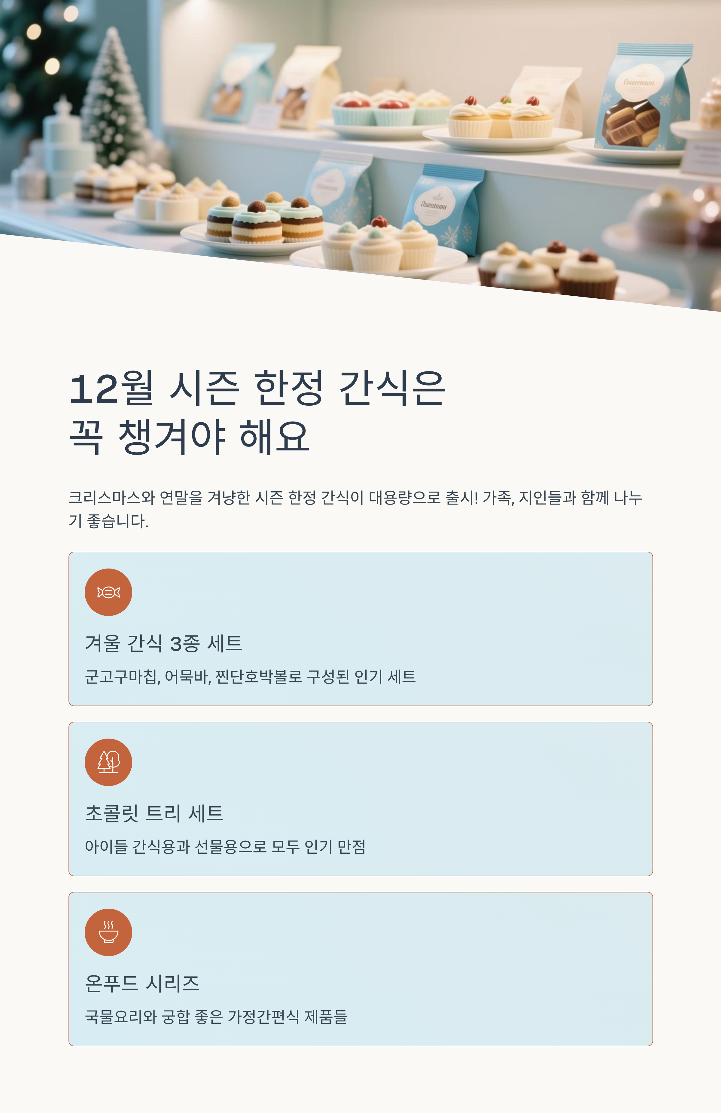 12월에는 크리스마스와 연말을 겨냥한 시즌 한정 간식이 다수 등장합니다.