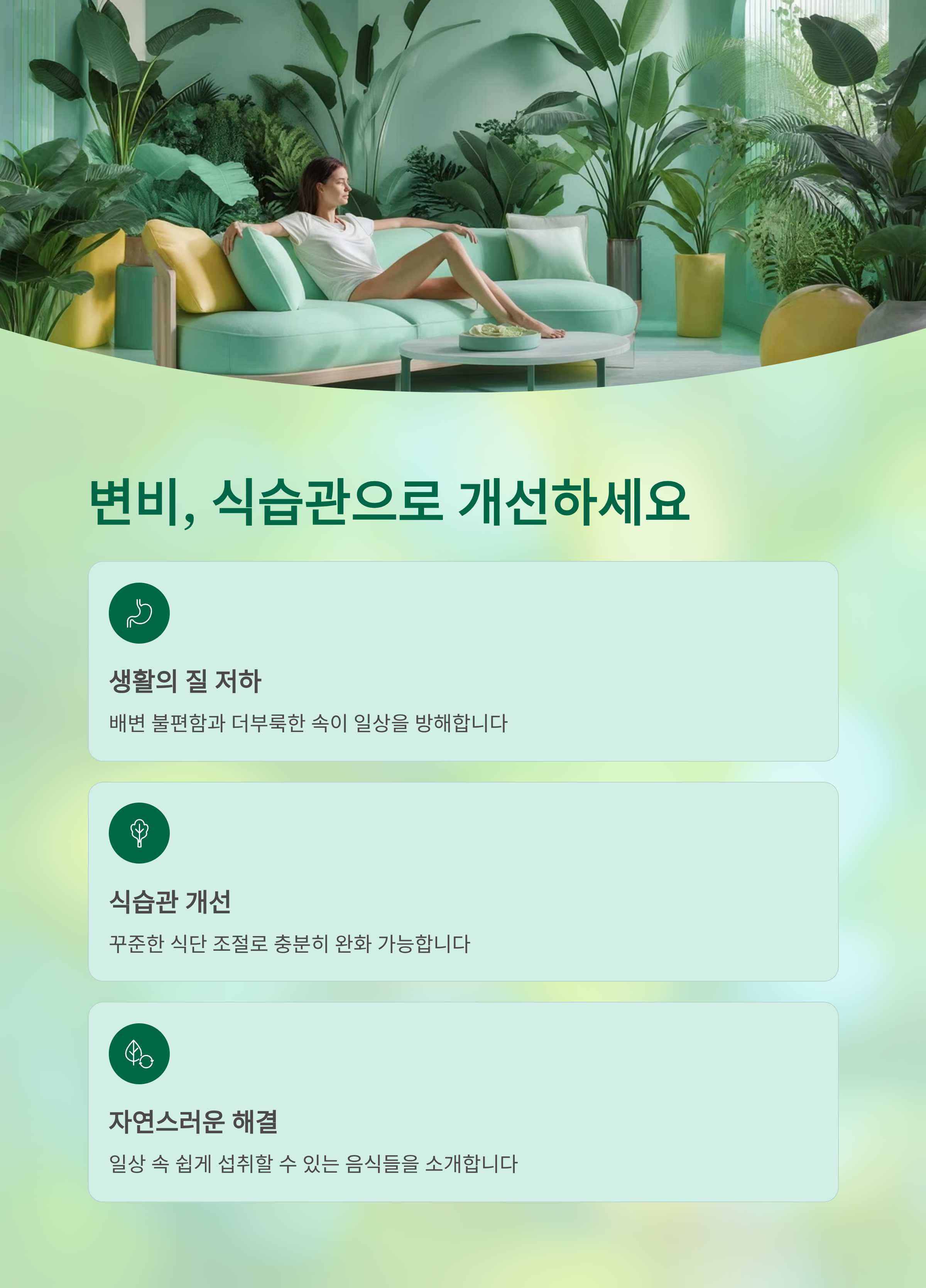잦은 배변 불편함이나 더부룩한 속 때문에 고생하고 계신가요? 변비는 단순한 불편함을 넘어 생활의 질을 떨어뜨리는 문제입니다. 하지만 꾸준한 식습관 개선으로도 충분히 완화할 수 있다는 사실, 알고 계셨나요? 이번 글에서는 일상에서 쉽게 섭취할 수 있는 변비 완화에 도움 되는 음식들을 소개해드릴게요.