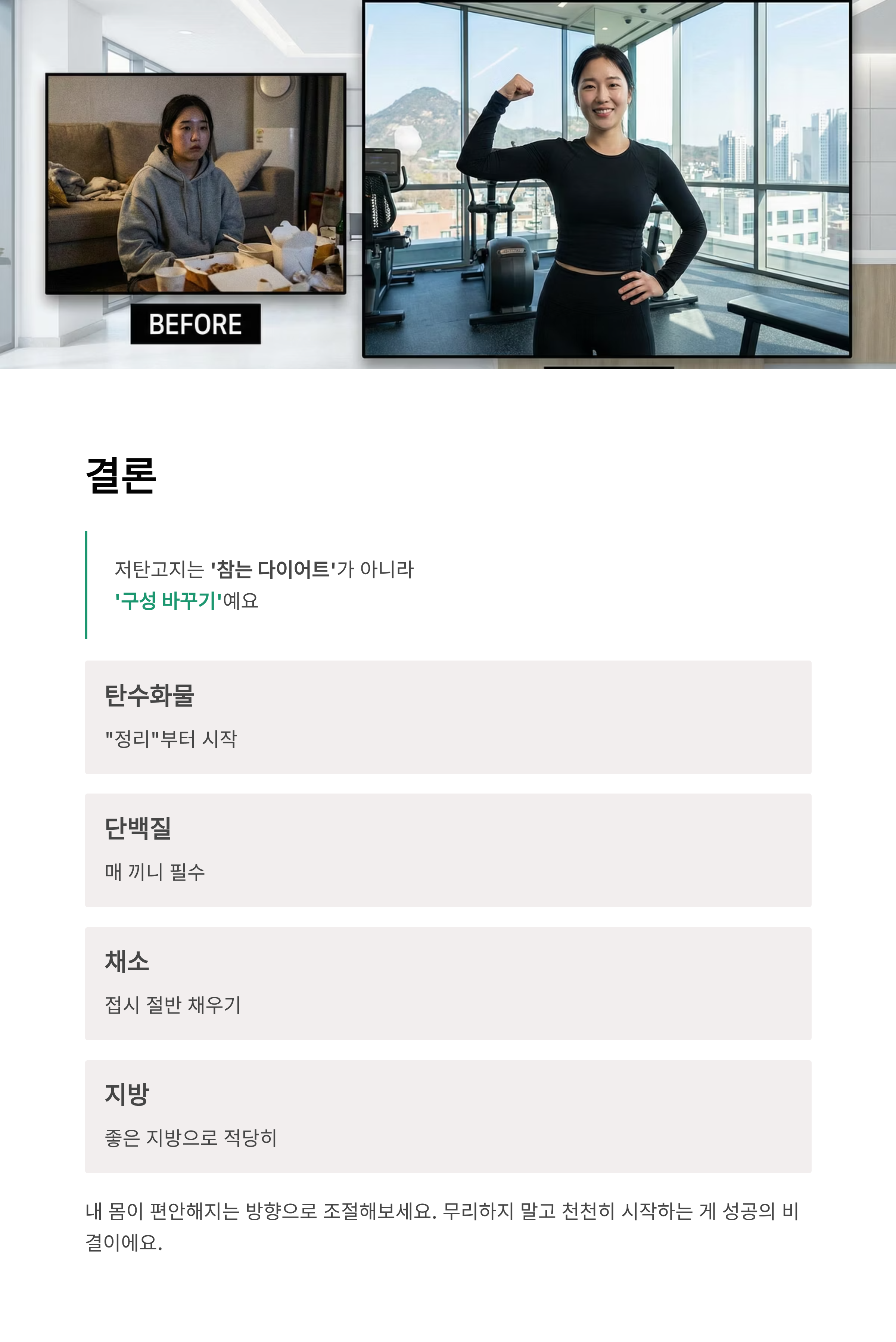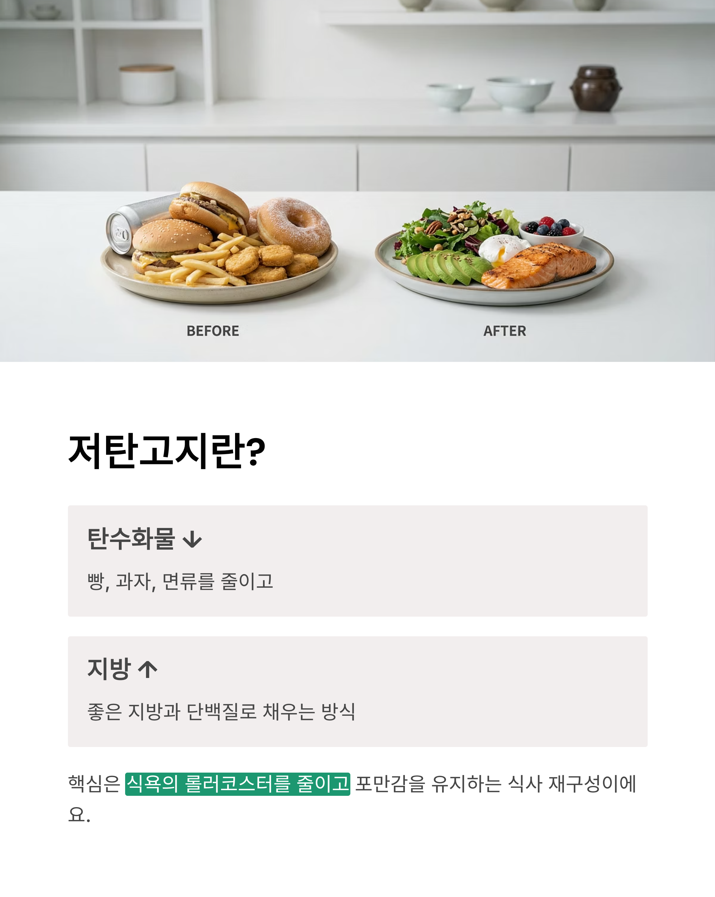 11) 결론: 저탄고지는 ‘참는 다이어트’가 아니라 ‘구성 바꾸기’