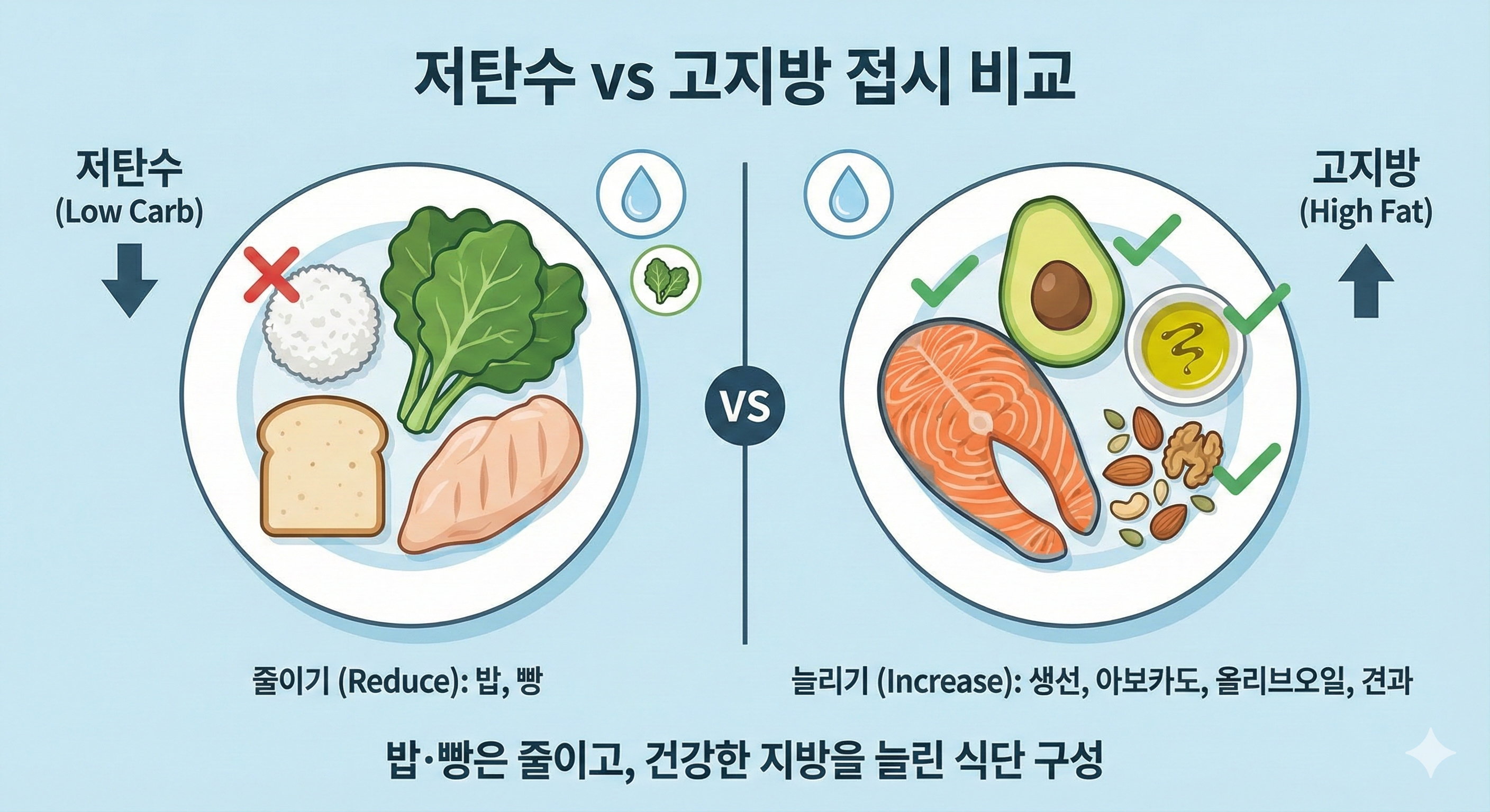 여기서 핵심은 “지방을 막 먹자”가 아니라, 탄수화물 비중을 낮춰 식욕의 롤러코스터를 줄이고, 그 빈자리를 좋은 지방과 단백질, 채소로 채우는 방식이라는 점입니다.