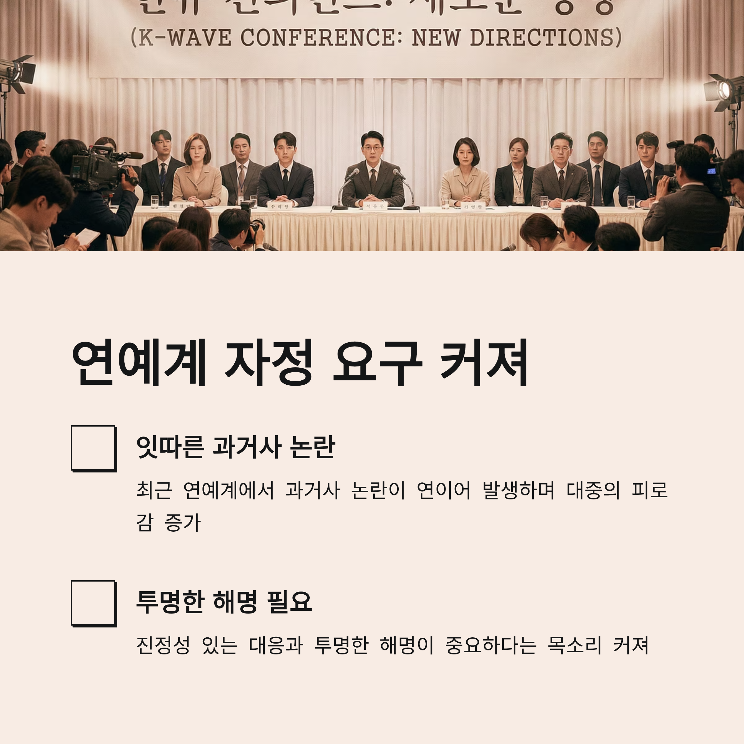 최근 연예계에서 과거사 논란이 잇따르면서 대중의 피로감도 높아지고 있습니다. 그만큼 투명한 해명과 진정성 있는 대응이 중요하다는 목소리도 커지고 있는 상황입니다.