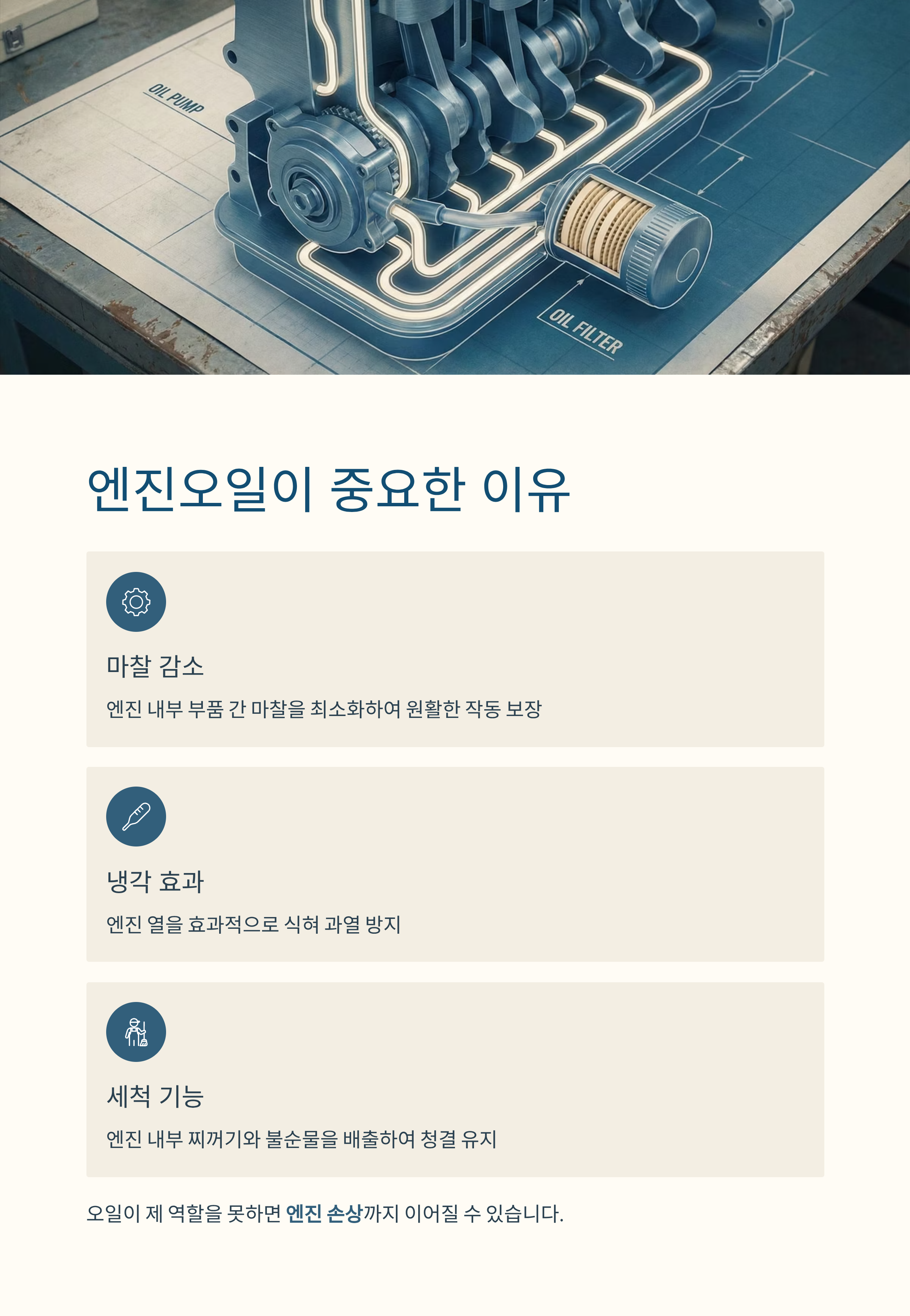 엔진오일은 엔진 내부 마찰을 줄이고, 열을 식히고, 찌꺼기를 배출하는 자동차의 혈액과 같다.