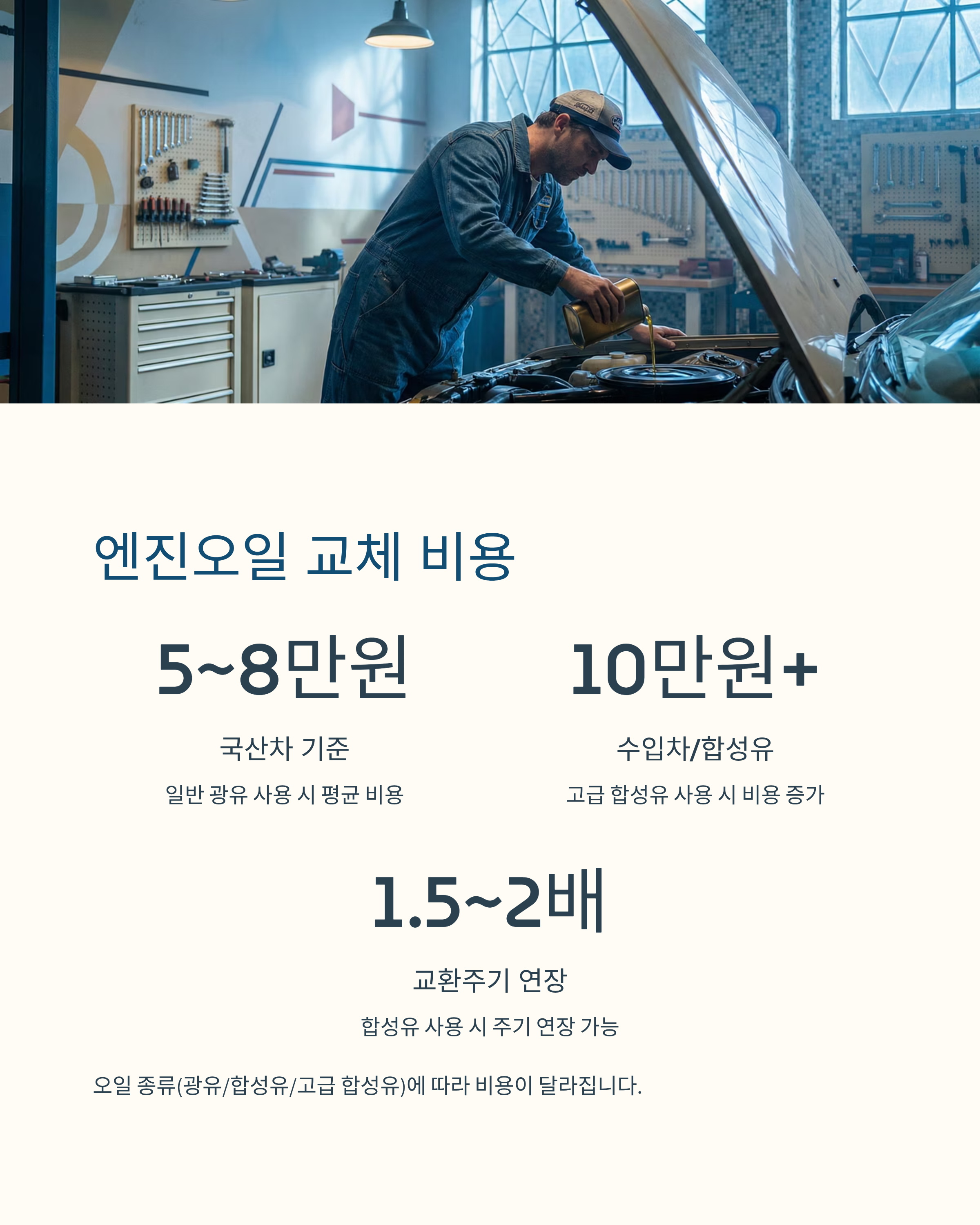 - 수입차 또는 합성유 사용 시 10만 원 이상