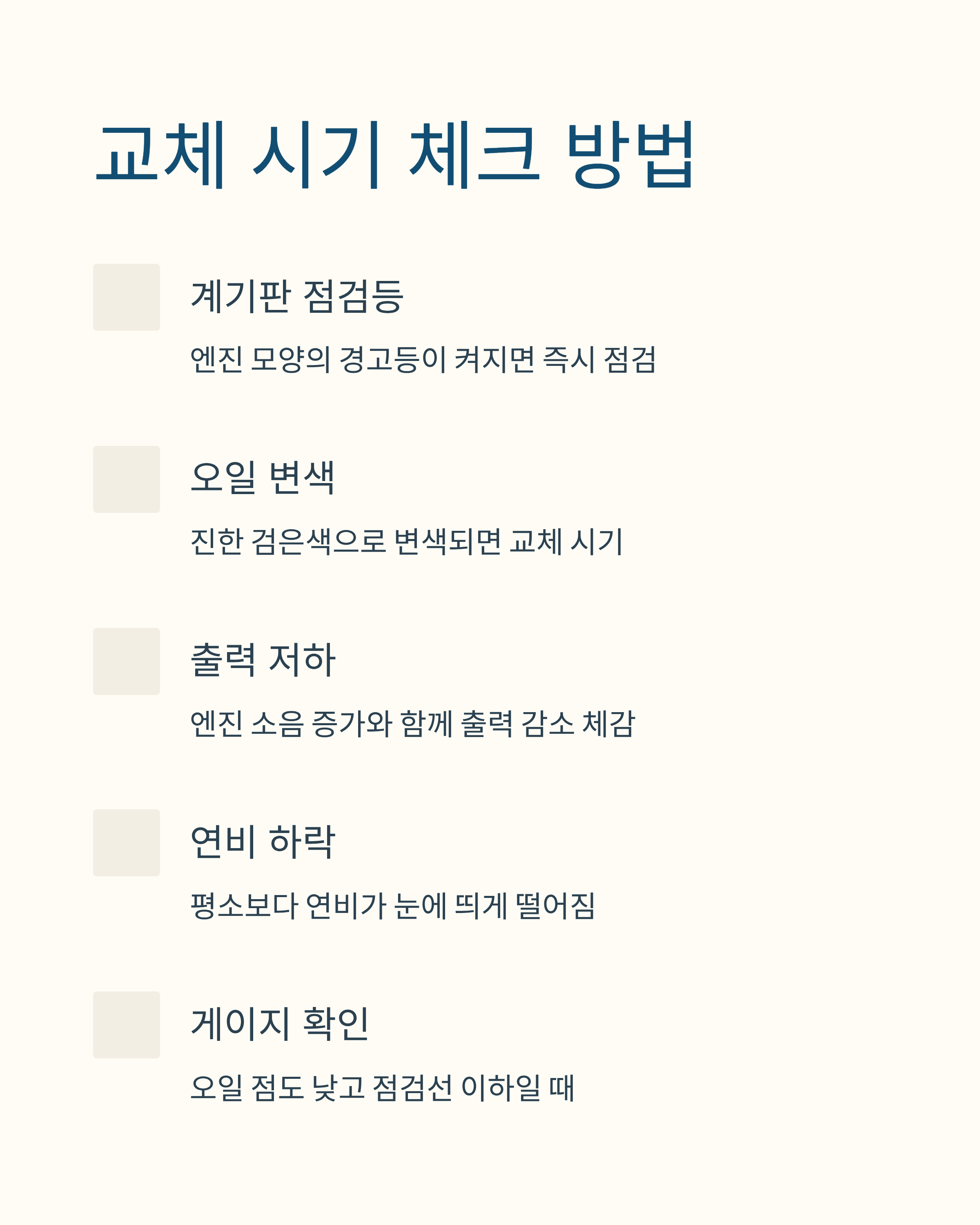 📌 합성유 사용 시 교환주기 연장 가능 (1.5~2배)