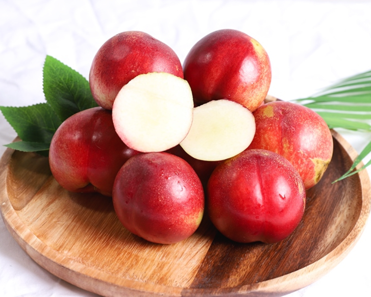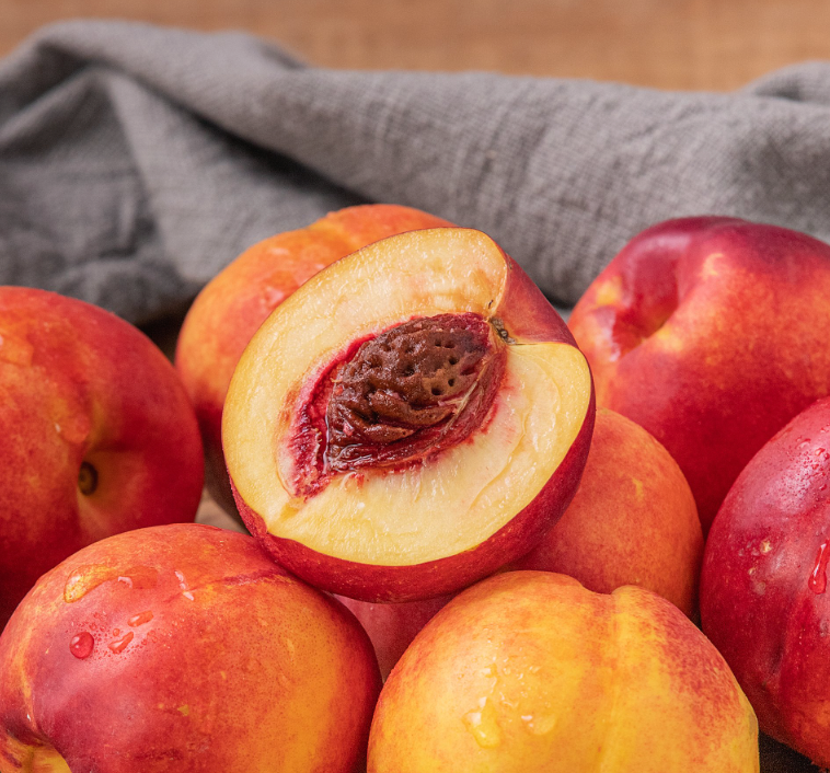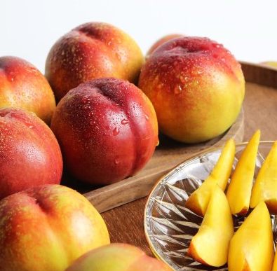 신선한 천도복숭아는 피부가 탄력 있고 흠집이 없으며 향이 풍부한 특징을 가지고 있습니다.