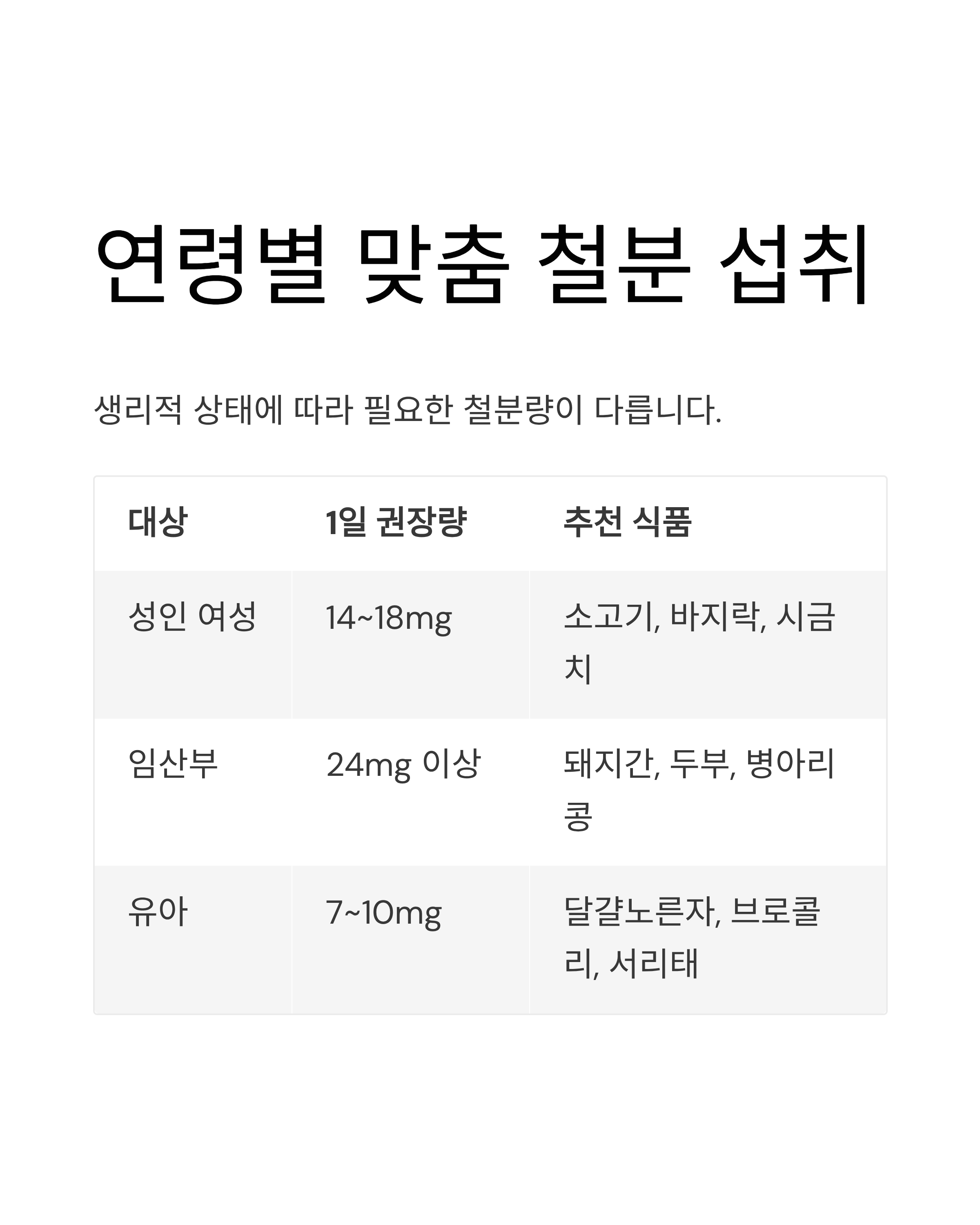 연령과 생리적 상태에 따라 필요한 철분량이 다르기 때문에,