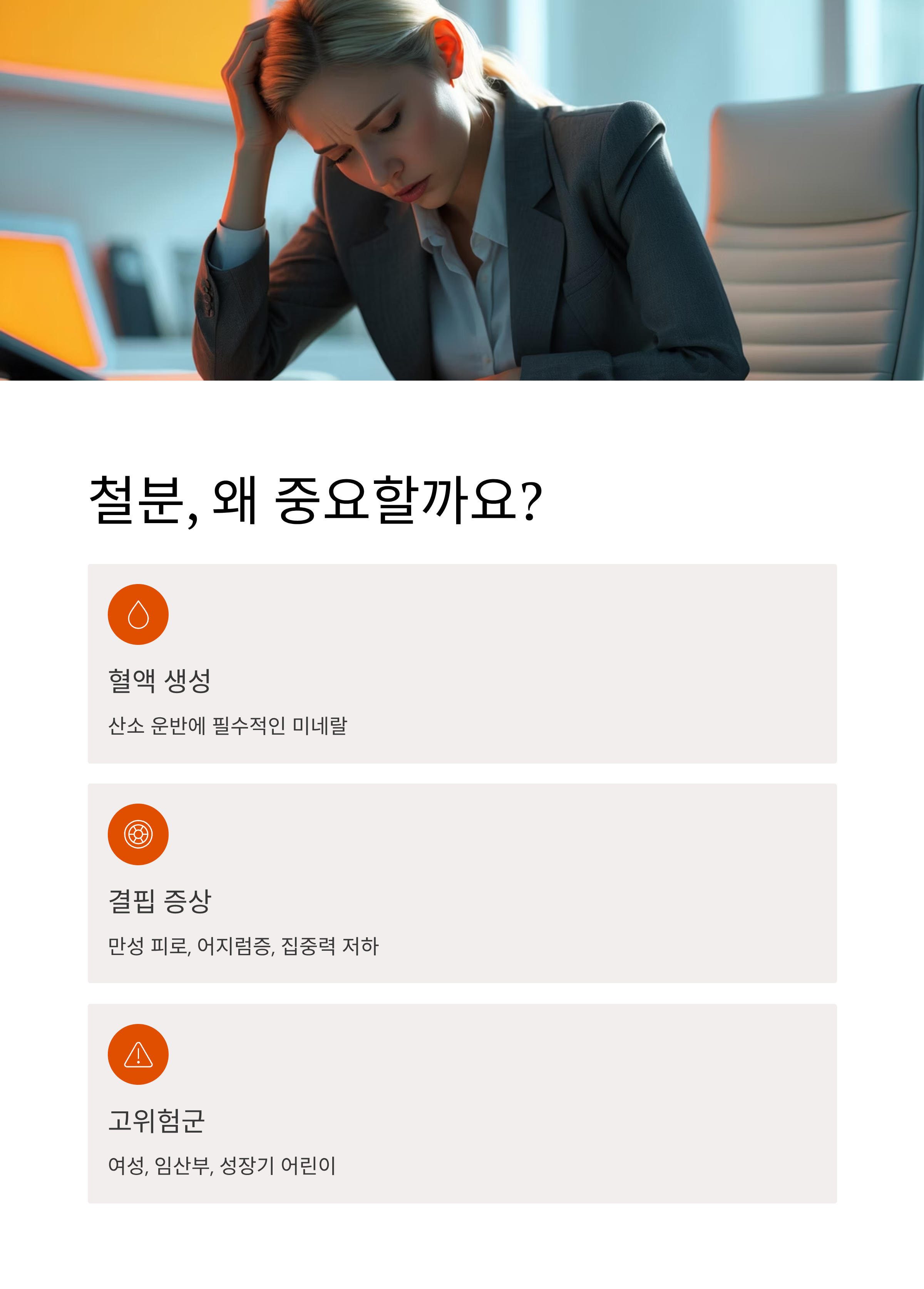 만성 피로, 어지럼증, 집중력 저하의 주요 원인이 철 결핍인 경우도 적지 않습니다.