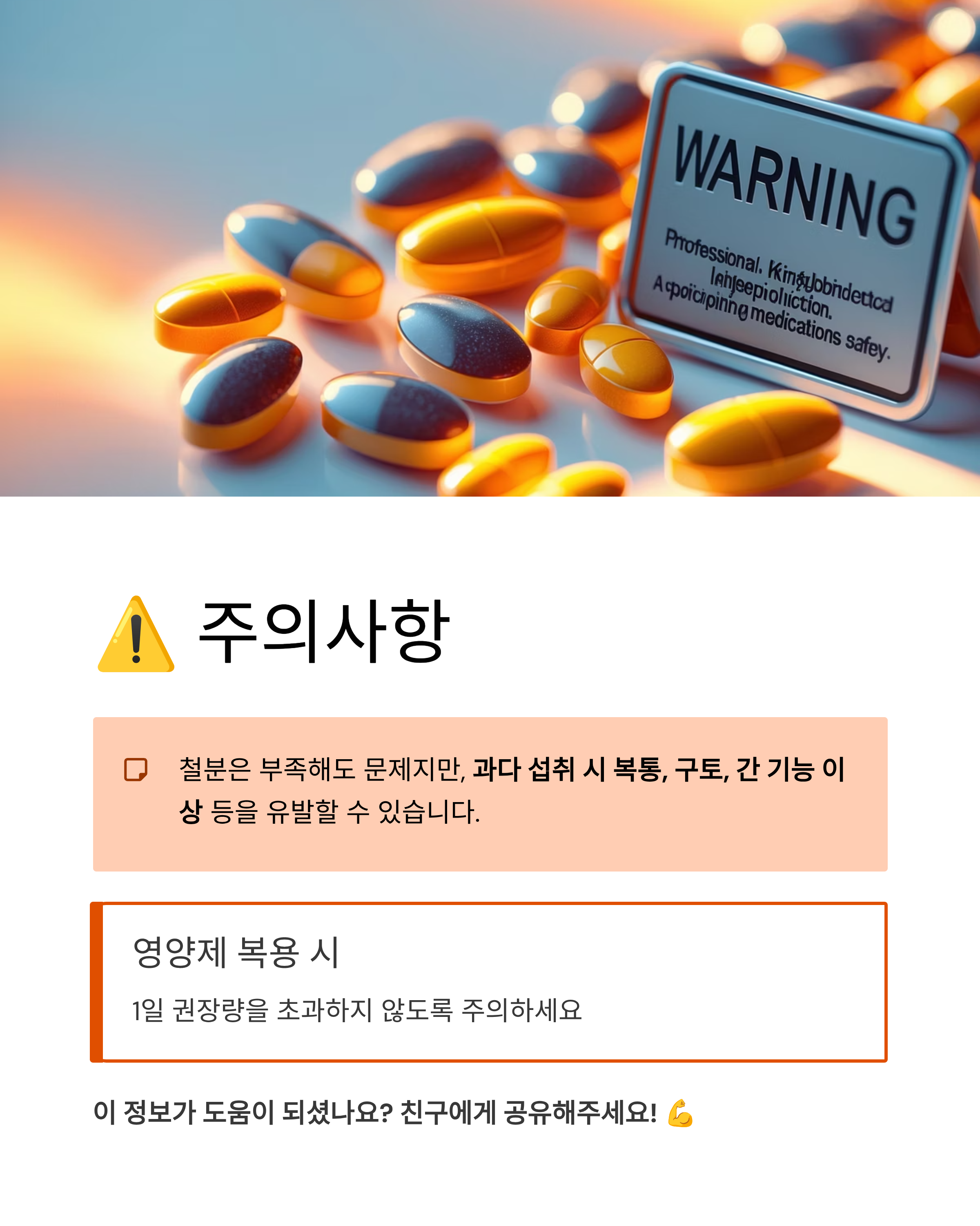 주의할 점: 철분도 과다 복용은 위험할 수 있어요