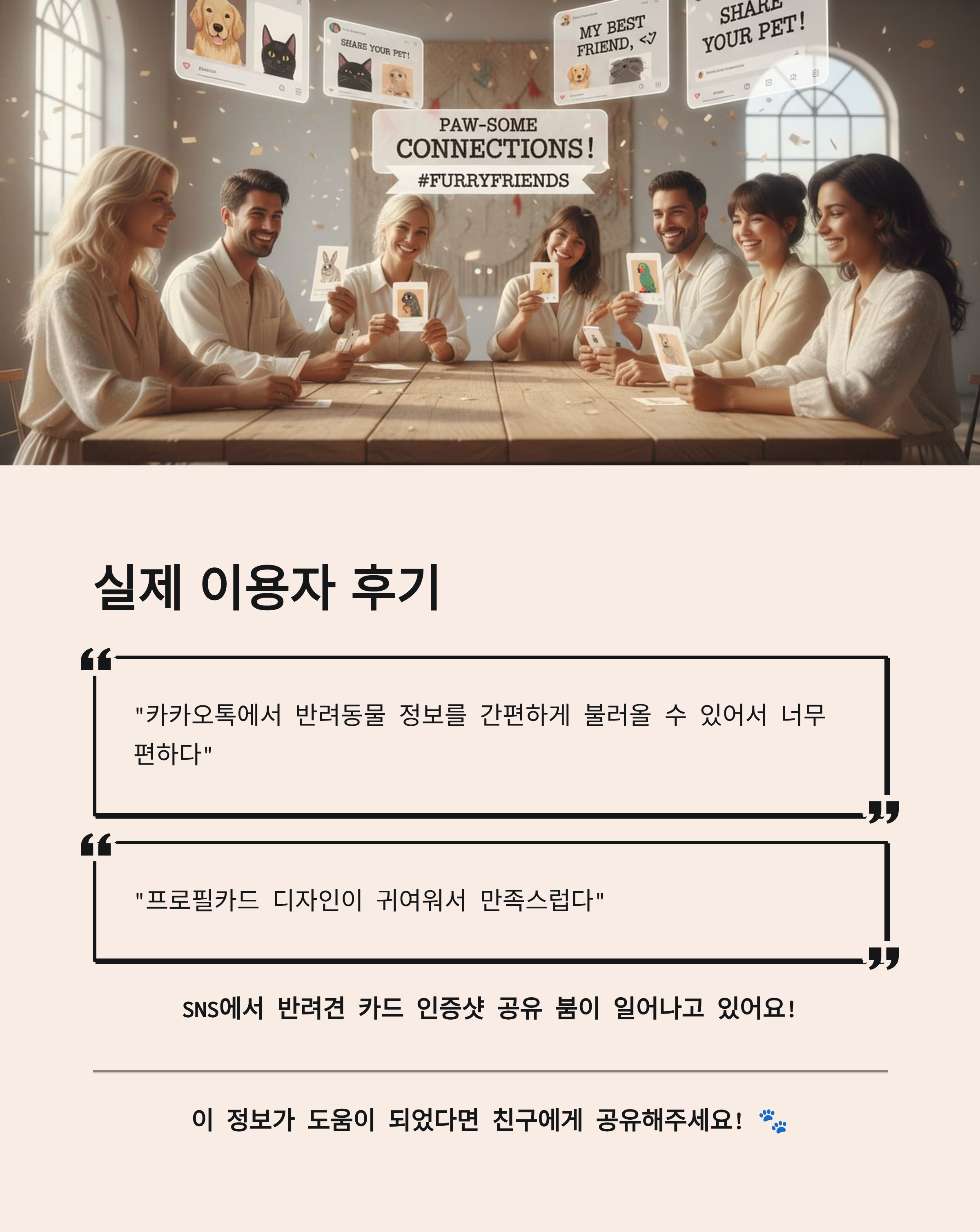 실제 이용자들의 반응을 보면 "카카오톡에서 반려동물 정보를 간편하게 불러올 수 있어서 너무 편하다", "프로필카드 디자인이 귀여워서 만족스럽다"는 의견이 많습니다.