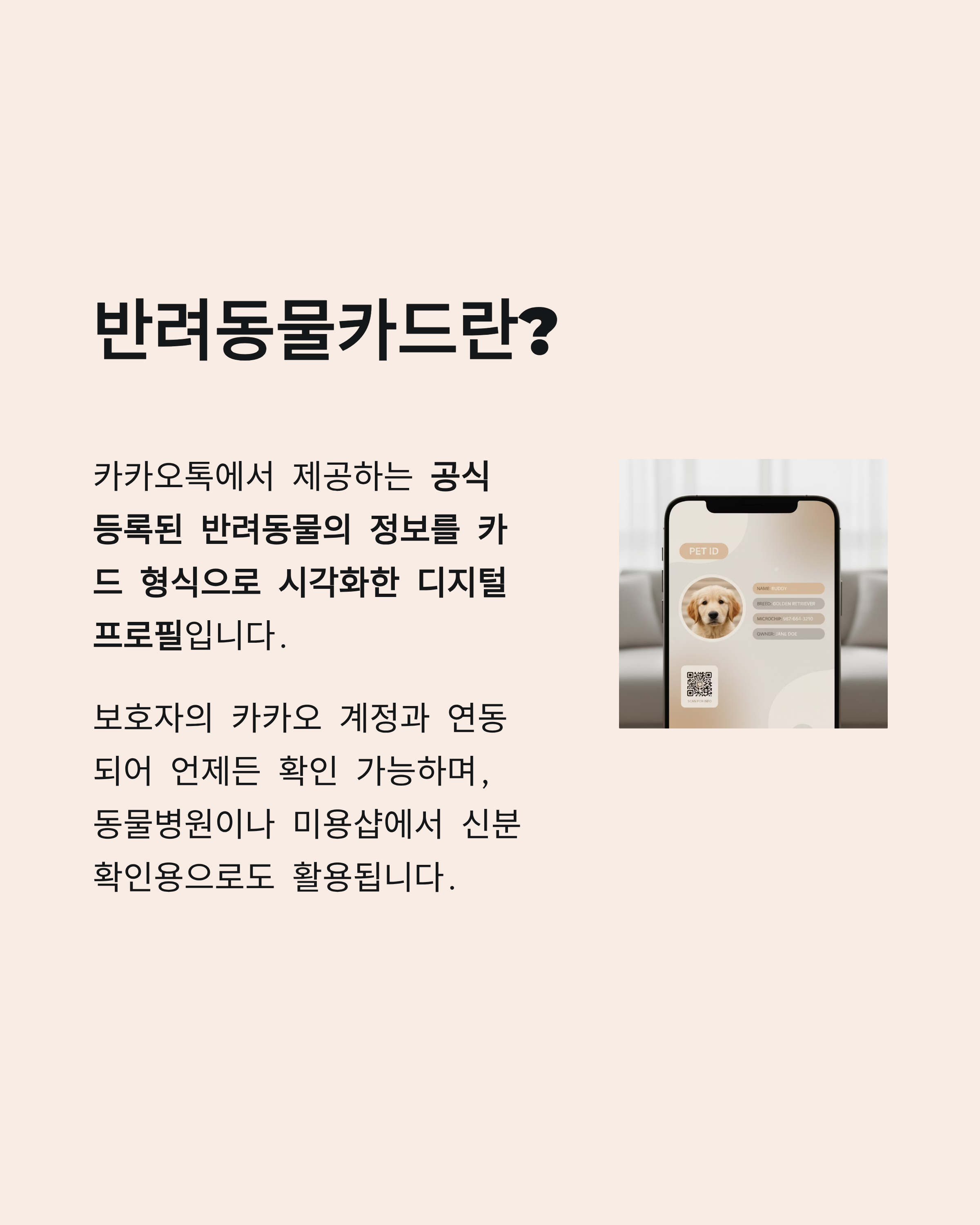 - 동물병원 접수 시 등록번호를 말 대신 보여줄 수 있고,